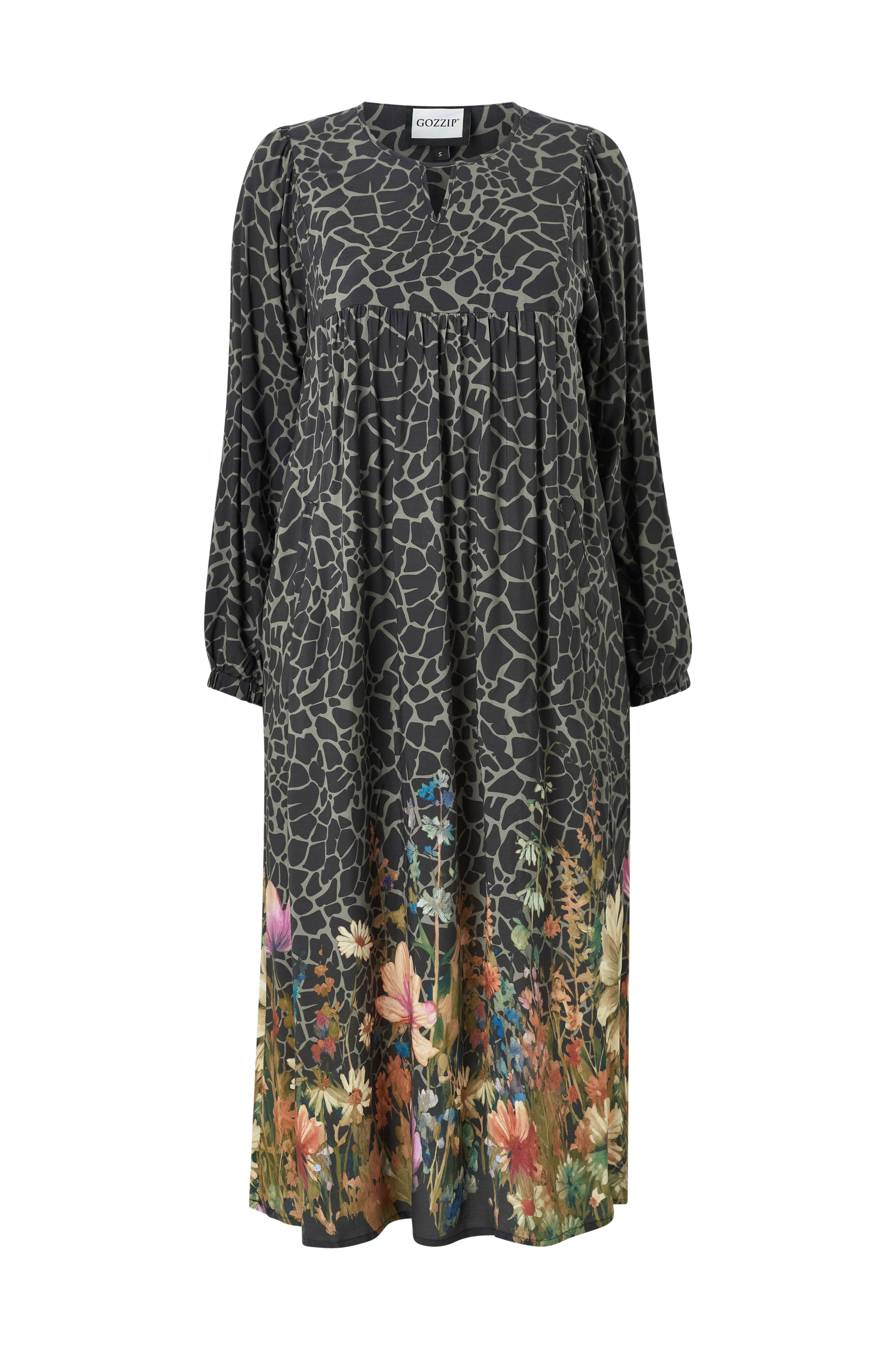 • Lang, mønstret kjole i viskose• Rund halsudskæring med slids foran• Lange ærmer med elastik ved manchetterne• Sidelommer• Længde: 128 cm i størrelse S• Plusstørrelser