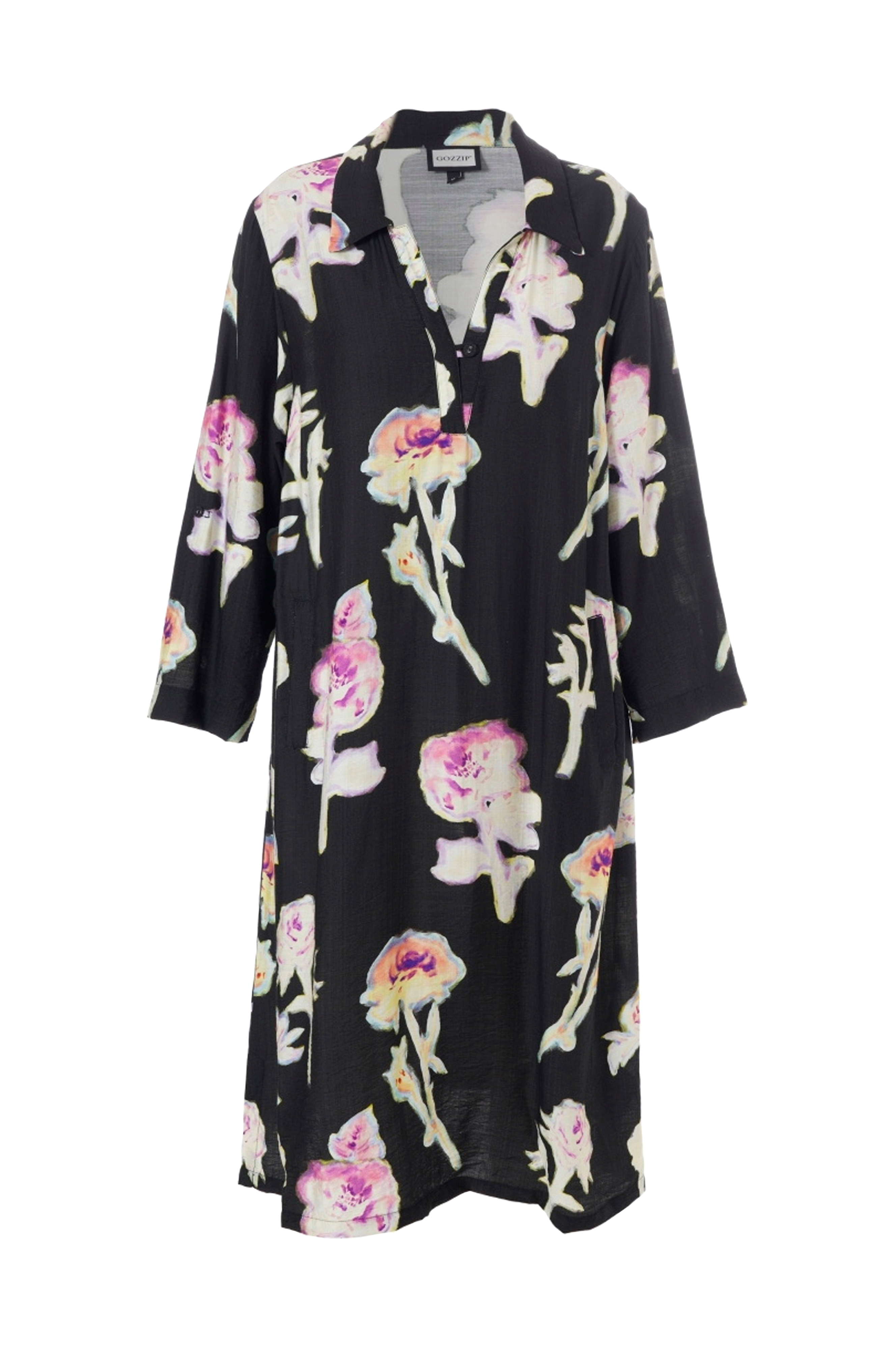 • Kjole i viskoseblanding med printet blomstermønster• Krave• V-formet halsudskæring med en knap• 3/4 lange, opfoldende ærmer• Slidser i siderne• Store størrelser• Længde: 113 cm i størrelse S