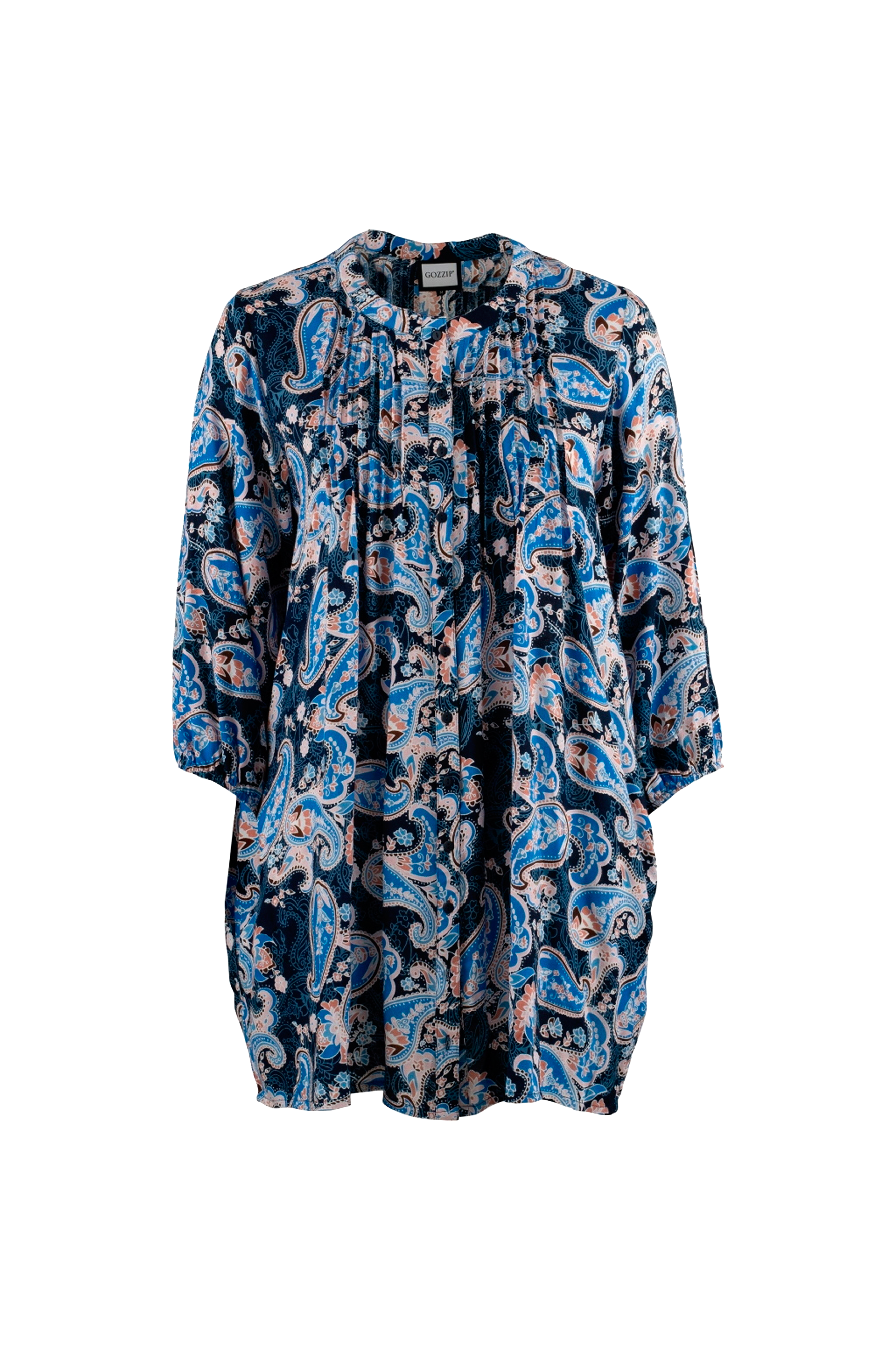 • Store størrelser• Model med svaj• Rund hals• Biselæg på brystet• Knapper hele vejen frem• Bredt ærme med elastik ved manchetterne• Indlagte sidelommer• Længde: 103 cm i størrelse S