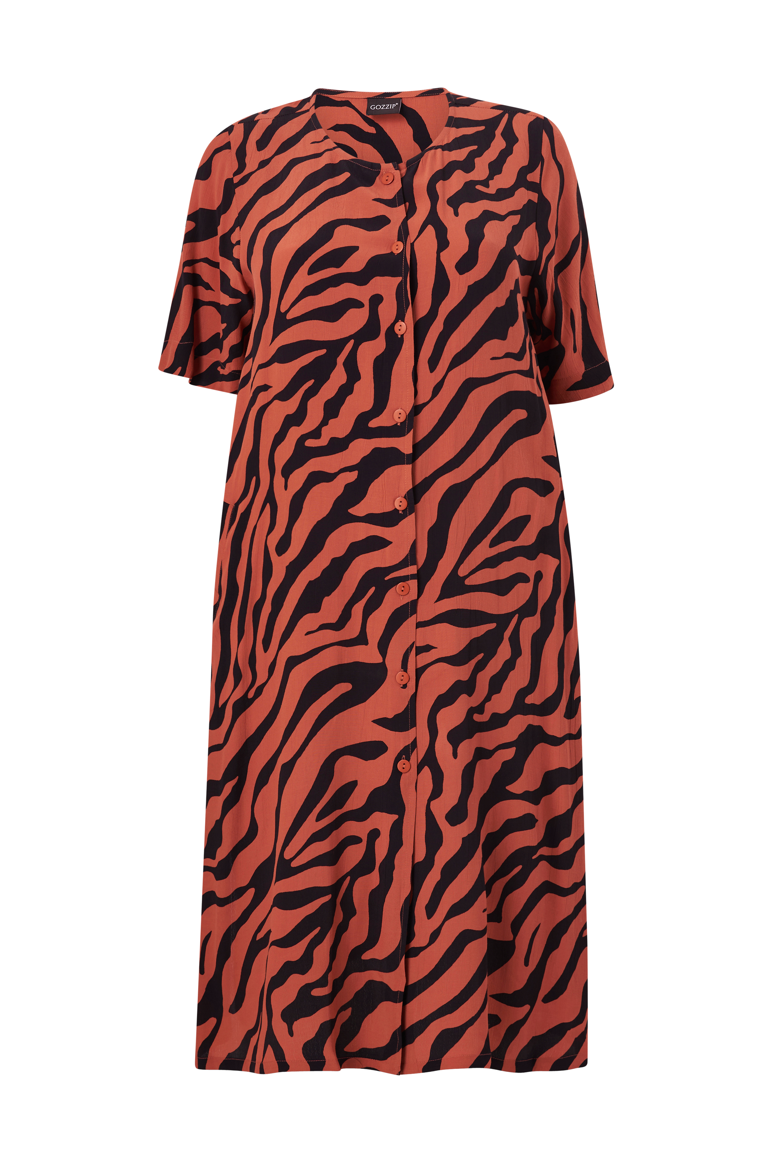 • Kjole i viskose• Knapper foran• Korte ærmer• Lommer i siderne• Slidser i siderne• Store størrelser• Længde: 120 cm i størrelse S