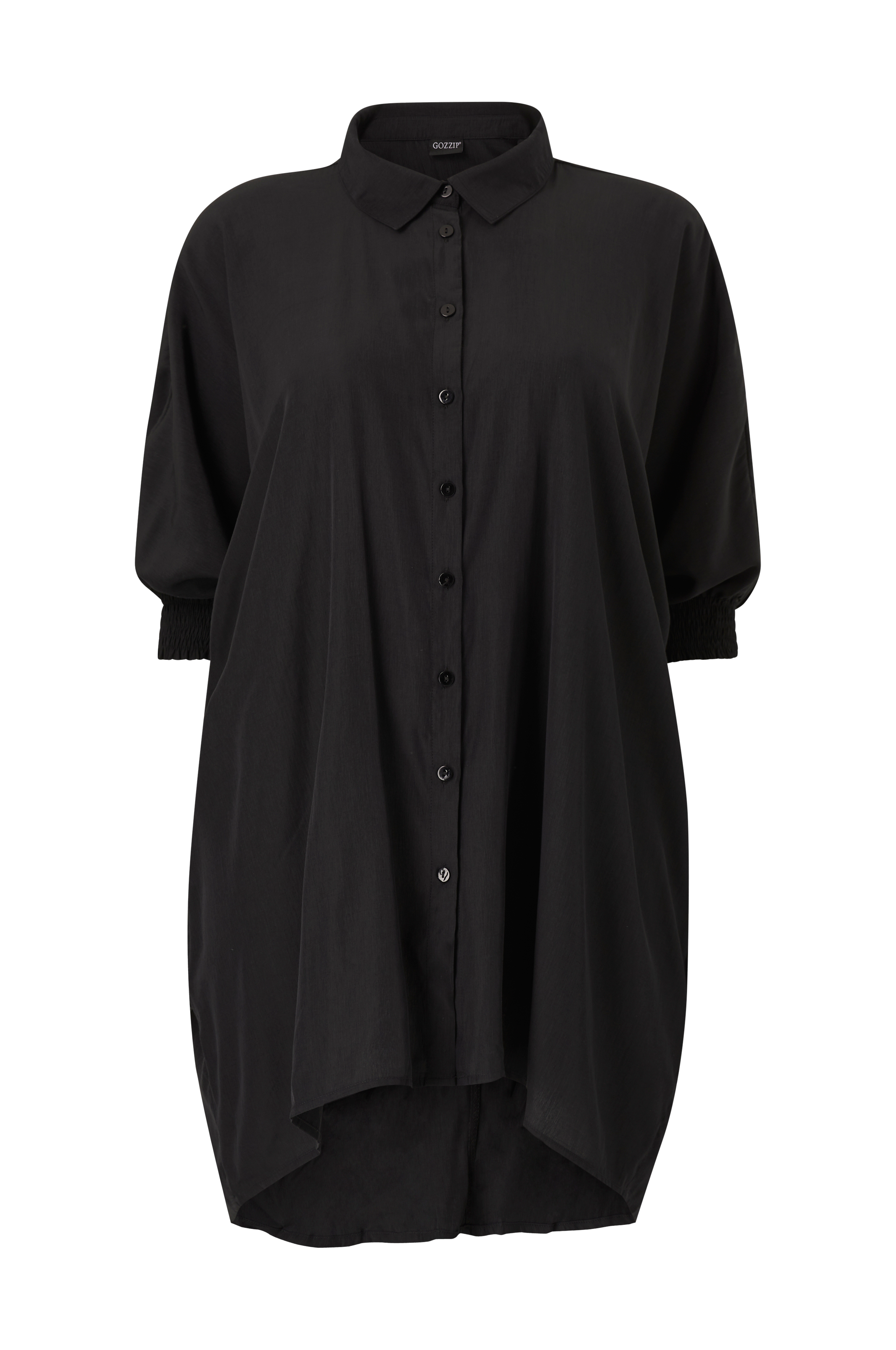 • Knapper foran• Halvlange flagermusærmer med smock ved manchetterne• Bred, løs pasform• Store størrelser