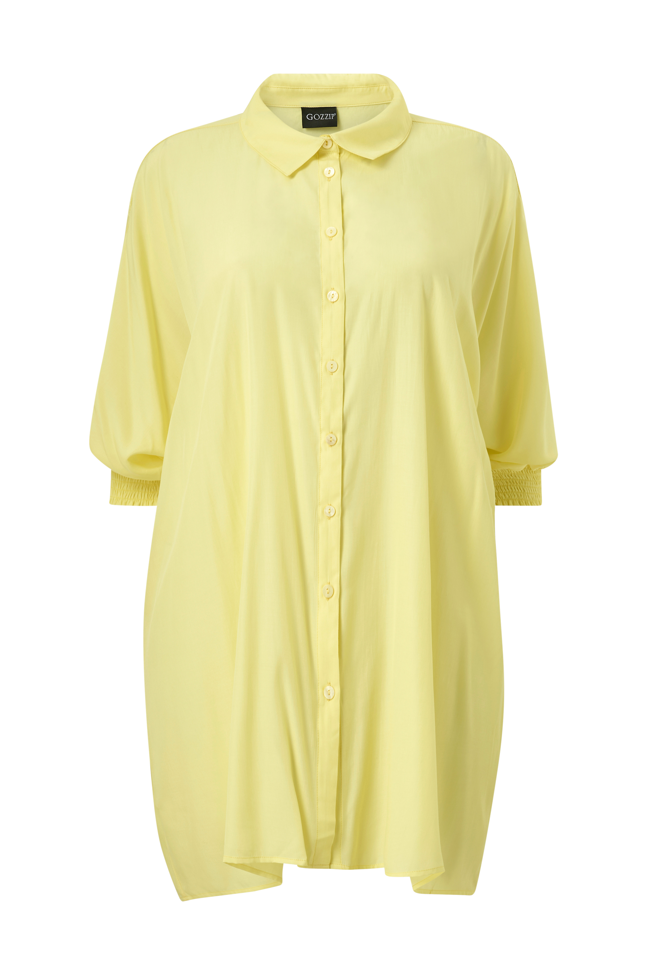 • Knapper foran• Halvlange flagermusærmer med smock ved manchetterne• Bred, løs pasform• Store størrelser