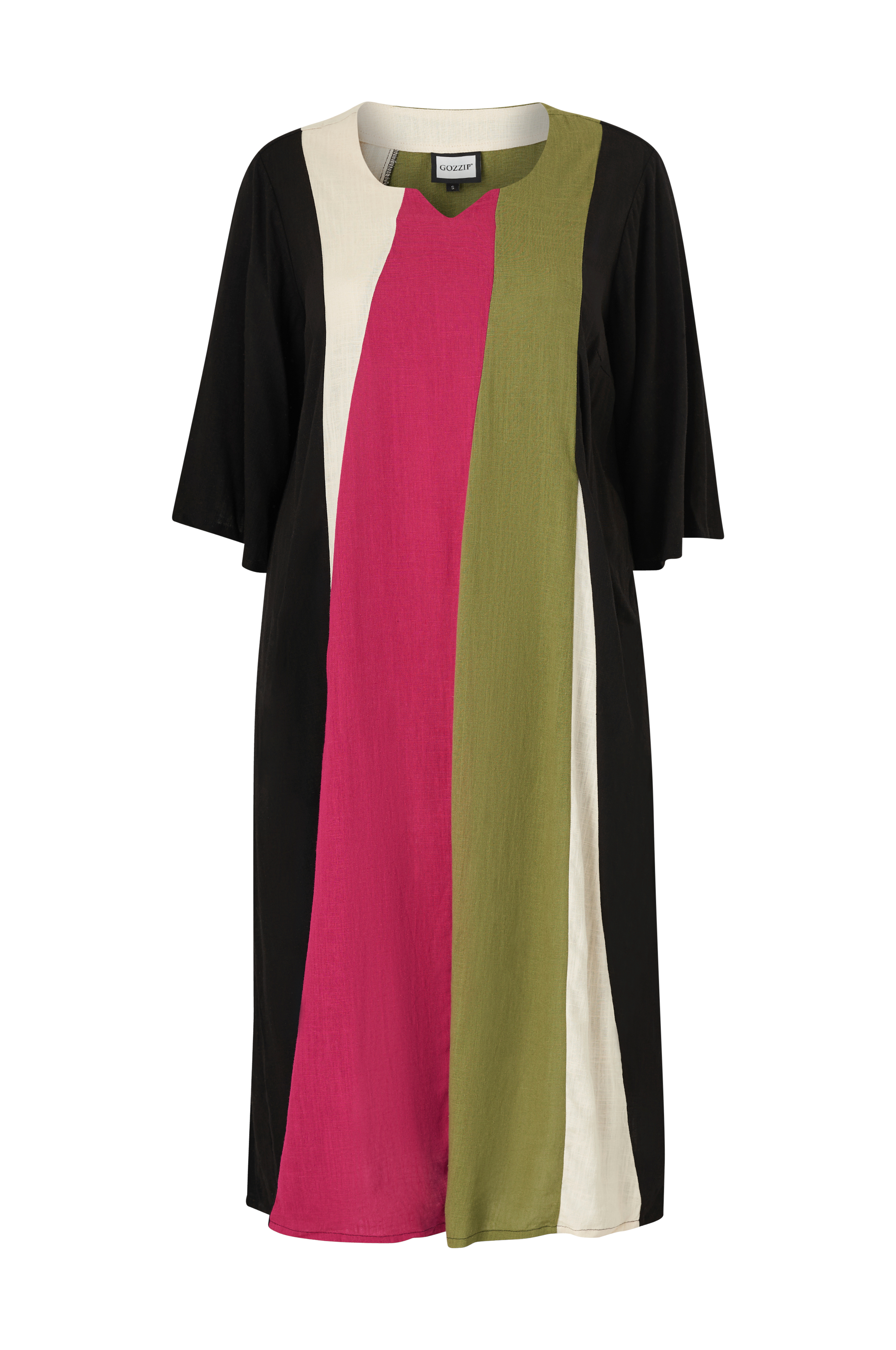 • Store størrelser• Multifarvet model med svaj• Dekorativ halsudskæring• Bredt ærme med svaj• Indlagte lommer• Længde: 126 cm i størrelse S