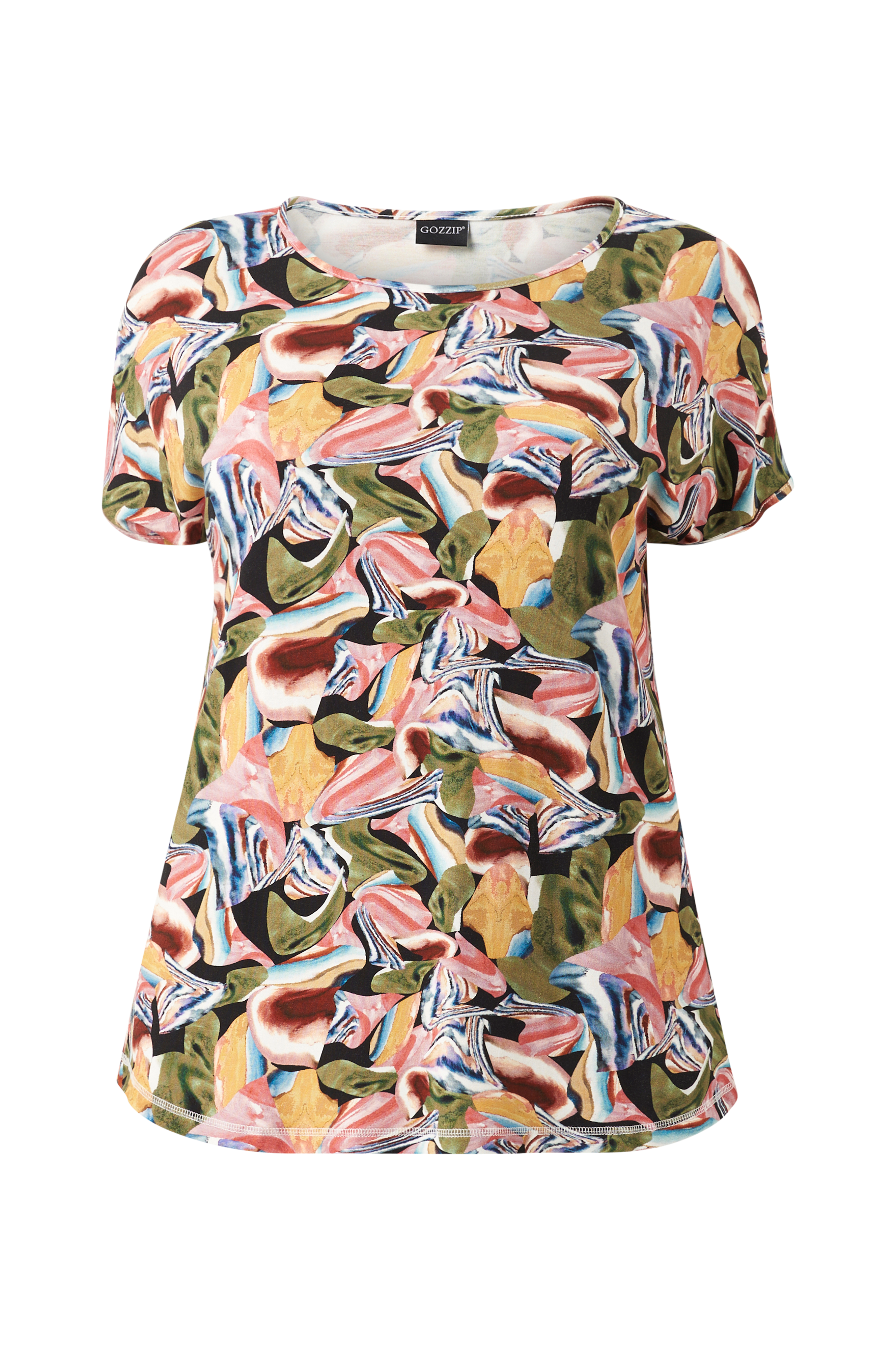 • Mønstret top i viskosejersey• Korte ærmer• Afrundet søm• Store størrelser