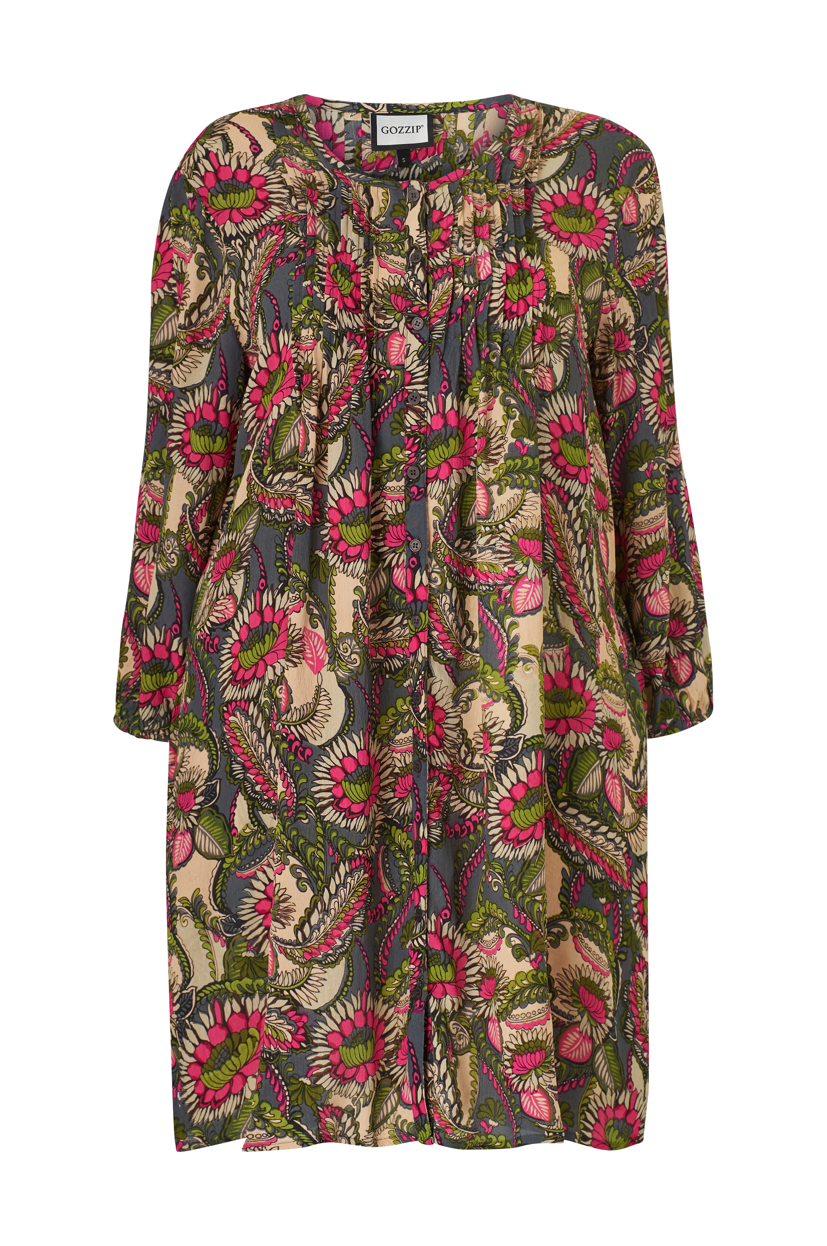 • Stor størrelse• Model med svaj i crepe• Rund hals• Syede biselæg på toppen• Knapper hele vejen frem• Langt, bredt ærme med elastisk manchet• Længde: 103 cm i størrelse S