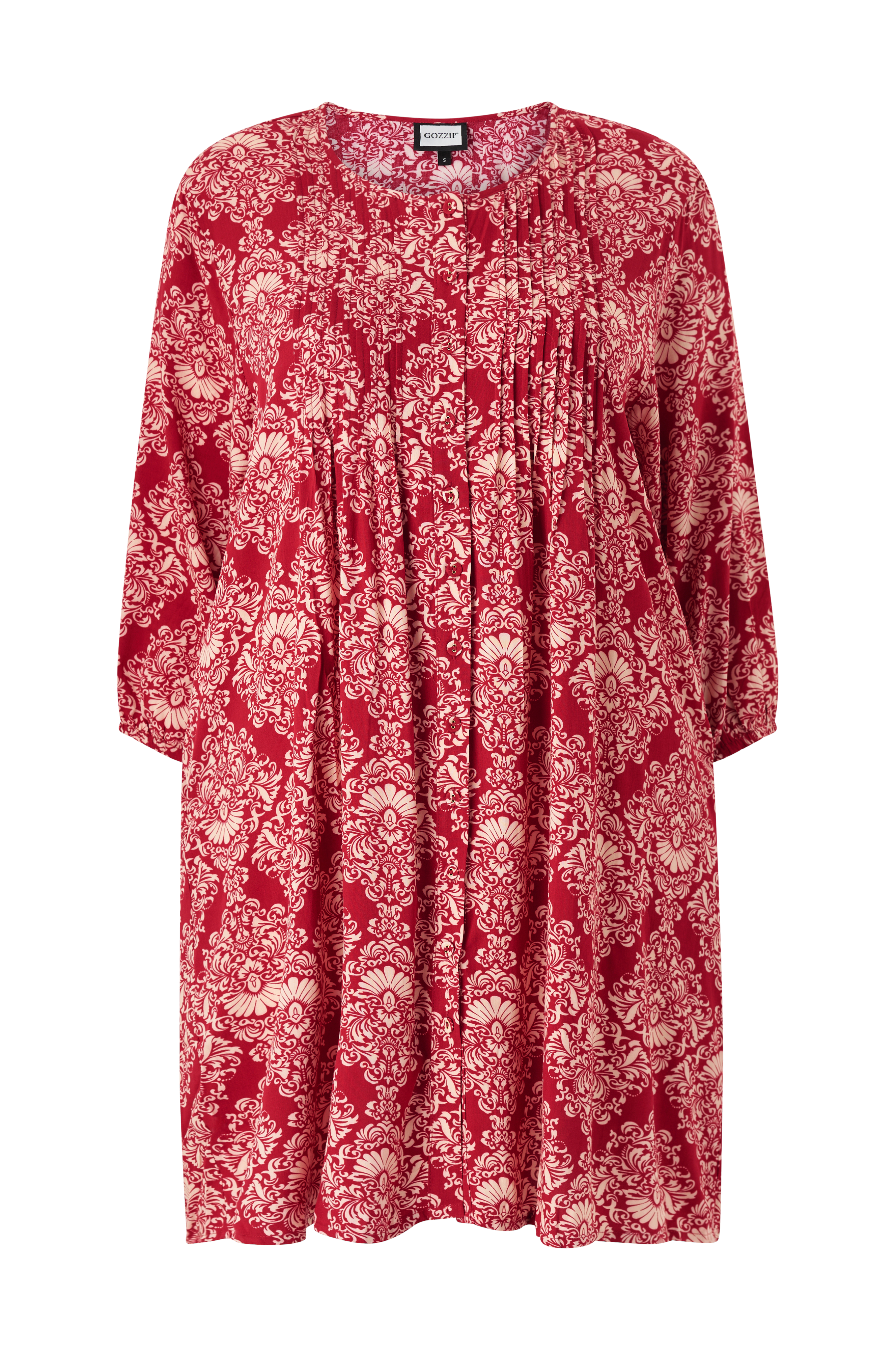 • Tunika i viskose med printet mønster• Rund hals• Knapper hele vejen frem• Biselæg oppe foran og oppe bagved• 3/4 lange ærmer med elastik ved manchetterne• Store størrelser• Længde: 102 cm i størrelse S