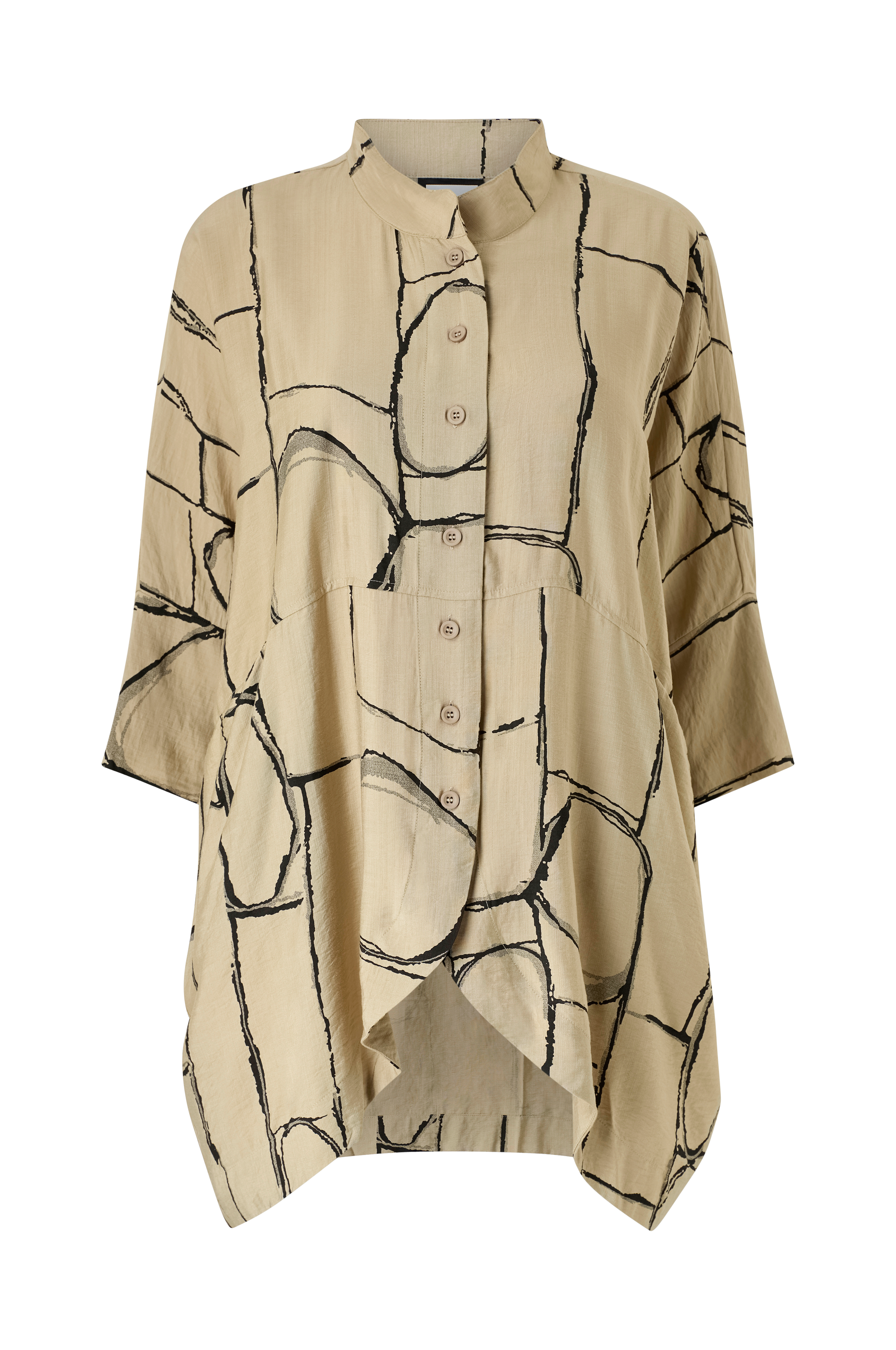 • Tynd tunika i viskoseblanding• Oversize model• Rund halsudskæring• Brede flagermusærmer• Lukning hele vejen frem• Åbne sidelommer• Noget længere bagside• Plusstørrelser• Længde: 96 cm i størrelse S