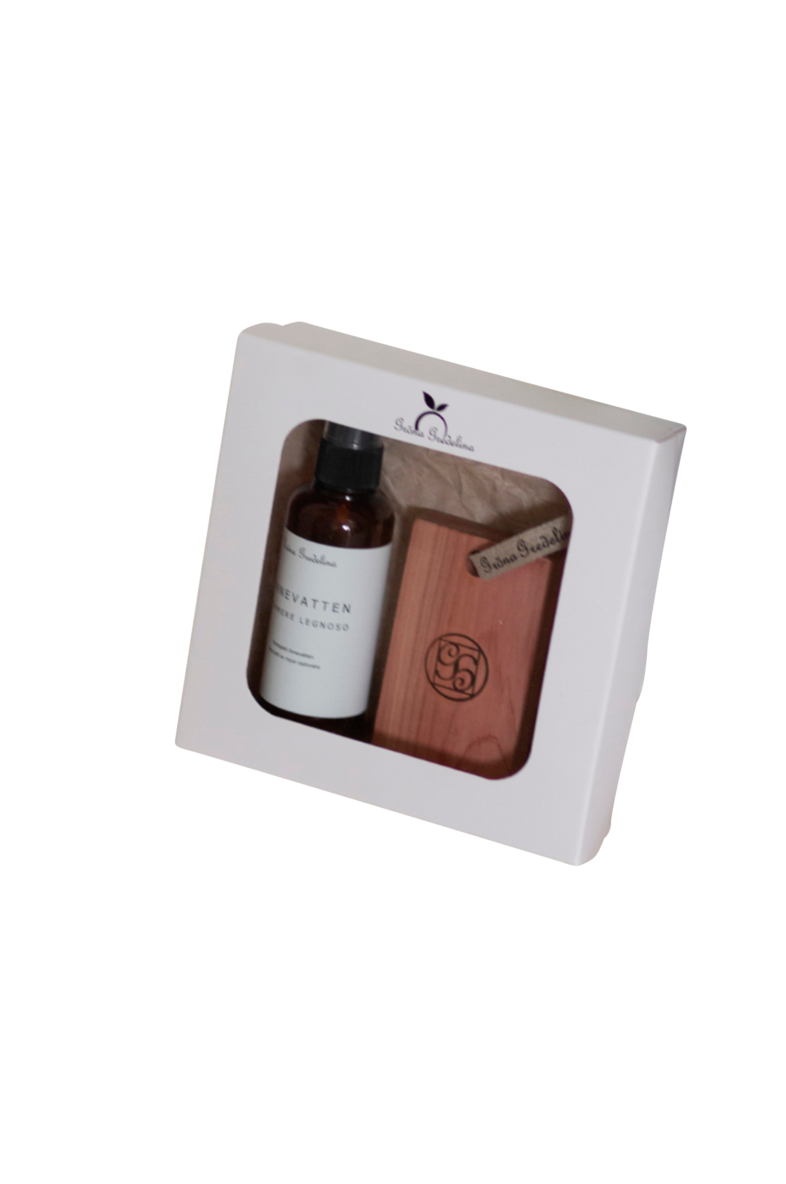 Sæt med 3 ark parfumeret brevpapir, linnedvand 100 ml cashmere legnoso og 1 cederblok. Perfekt gave til dem, der er interesserede i tøjpleje