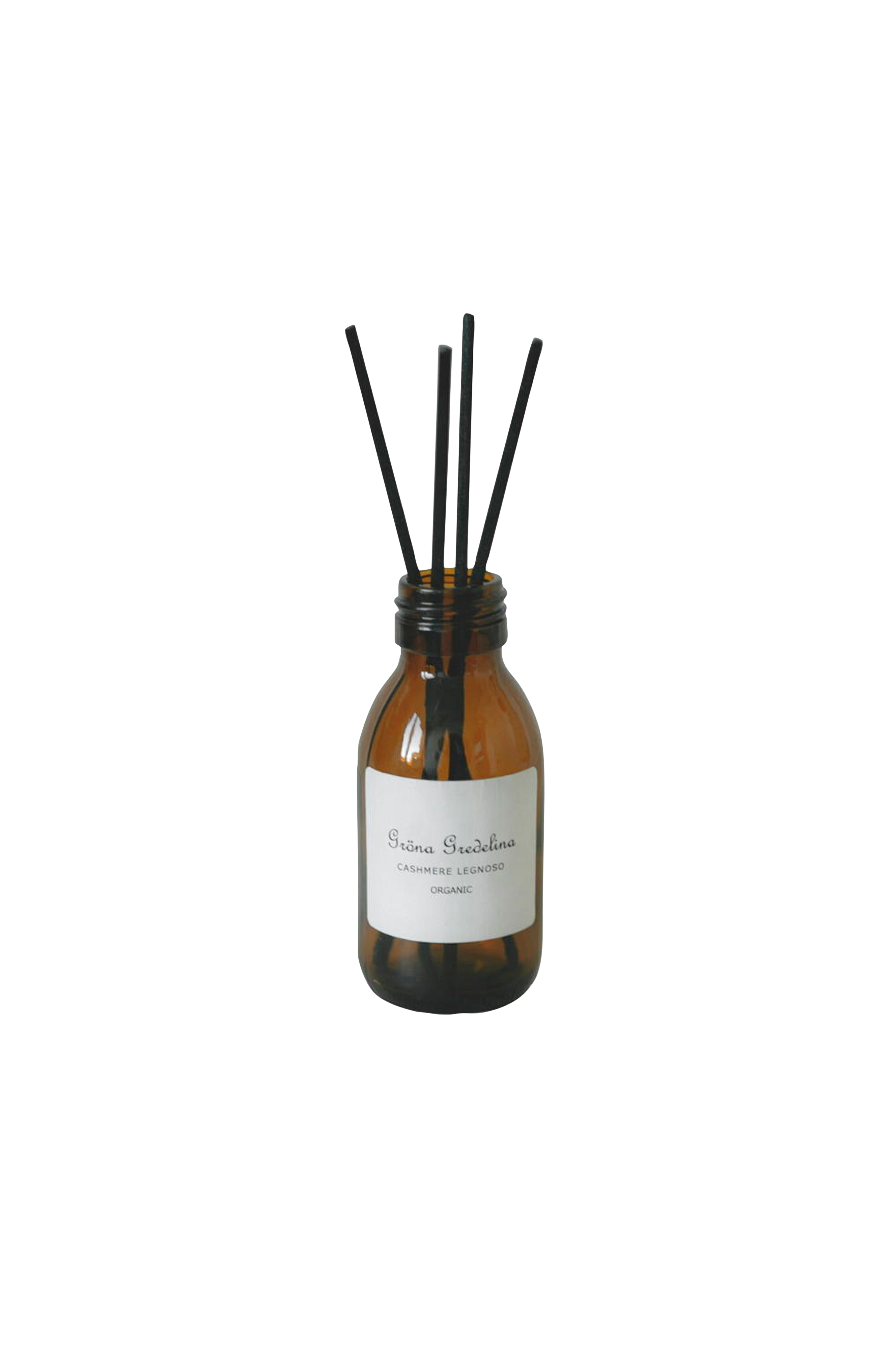 Gröna Gredelinas økologiske duftpinde/diffusere adskiller sig lidt fra mange andre, da de er alkoholfrie. Vores duftpinde indeholder i stedet en økologisk duftbærende olie. Træpindene trækker olie fra flasken og afgiver en behagelig duft. Duften varer i ca. 3 måneder afhængigt på antallet af pinde du har i. Olien gør at duften bliver mildere og meget behagelig. Cashmere Legnoso har en blid duft af ceder og sandeltræ. Indhold: Økologisk rapsolie, ftalatfri duftolie. 100 ml.
