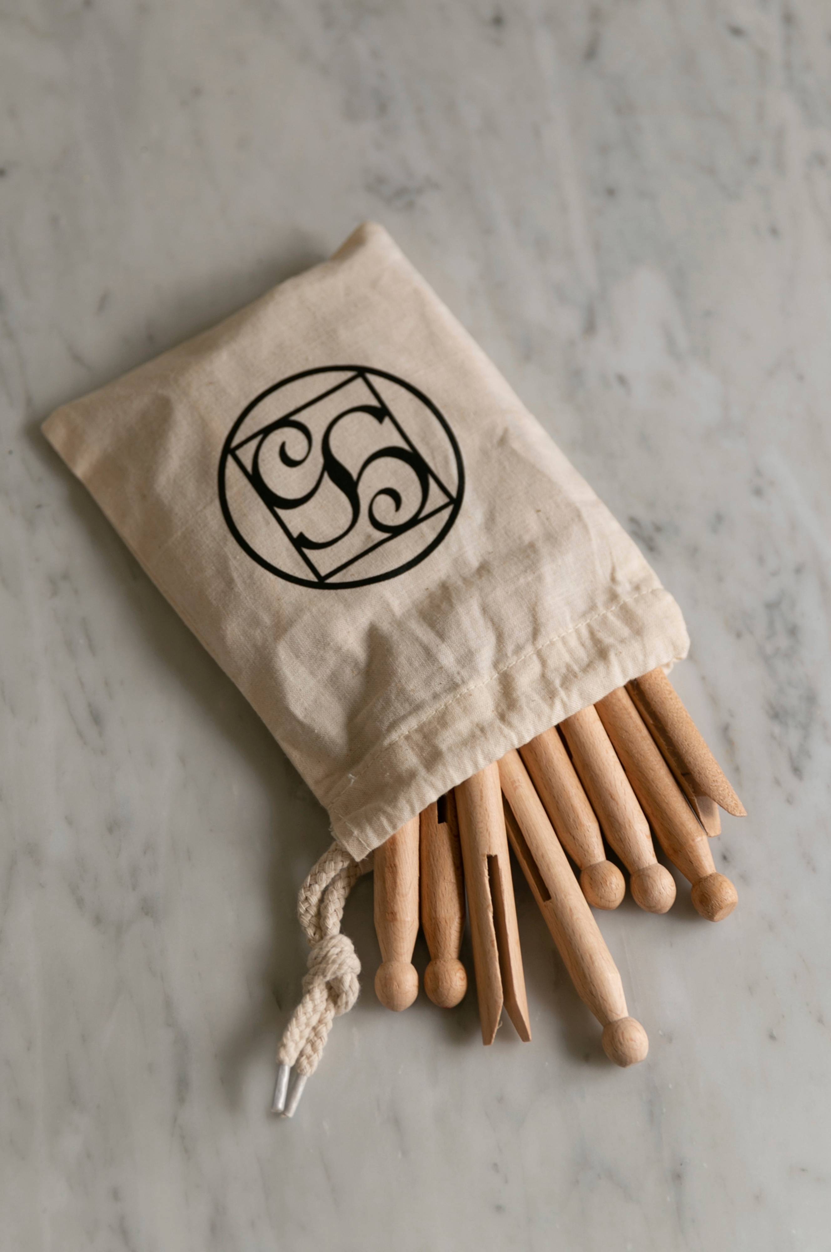 Gammeldags tøjklemmer i praktisk bomuldspose. Også kaldet amerikanske tøjklemmer, lavet udelukkende af træ. Disse gammeldags tøjklemmer er særligt velegnede til udendørs brug, fordi de holder vasketøjet på plads selv i hård vind og heller ikke kan ruste - ingen risiko for at vasketøjet bliver misfarvet af rustne tøjklemmer! 25 stk. i pakken.