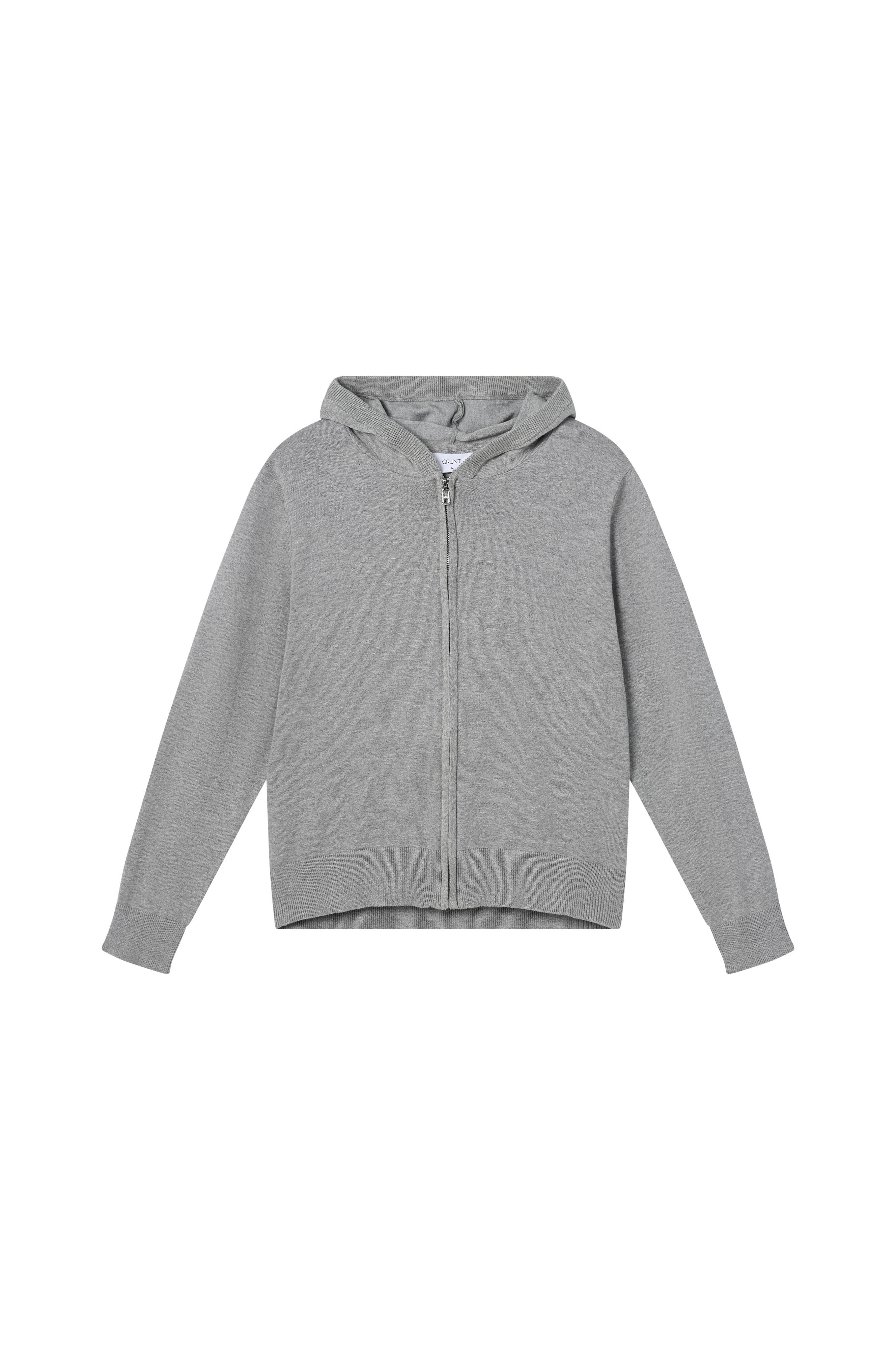 • Fintstrikket hættetrøje• Lynlås• Ribstrik ved manchetterne og nederst