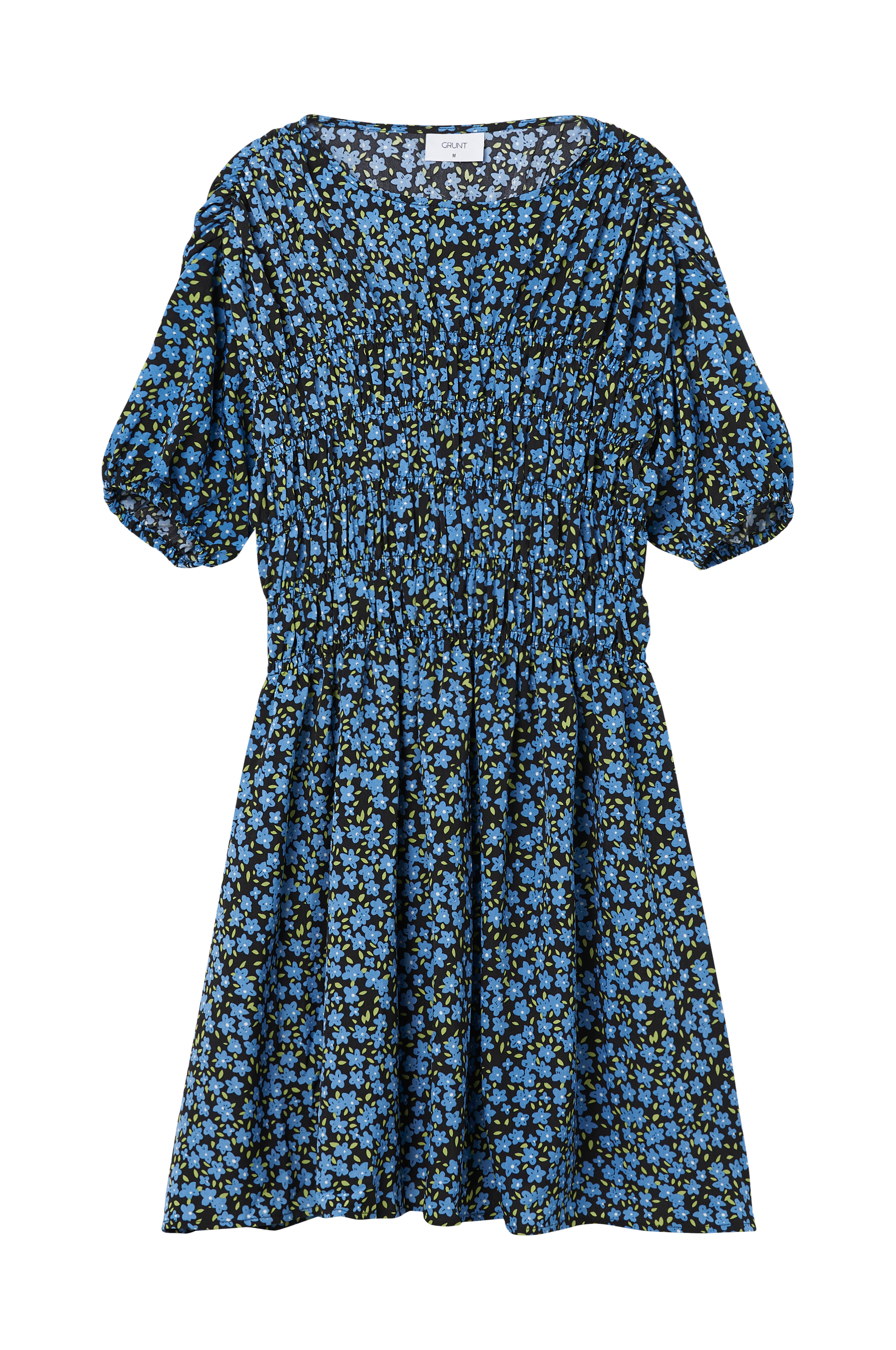 • Rund halsudskæring• Smocket øvre del• Korte ærmer med elastisk bånd ved manchetterne