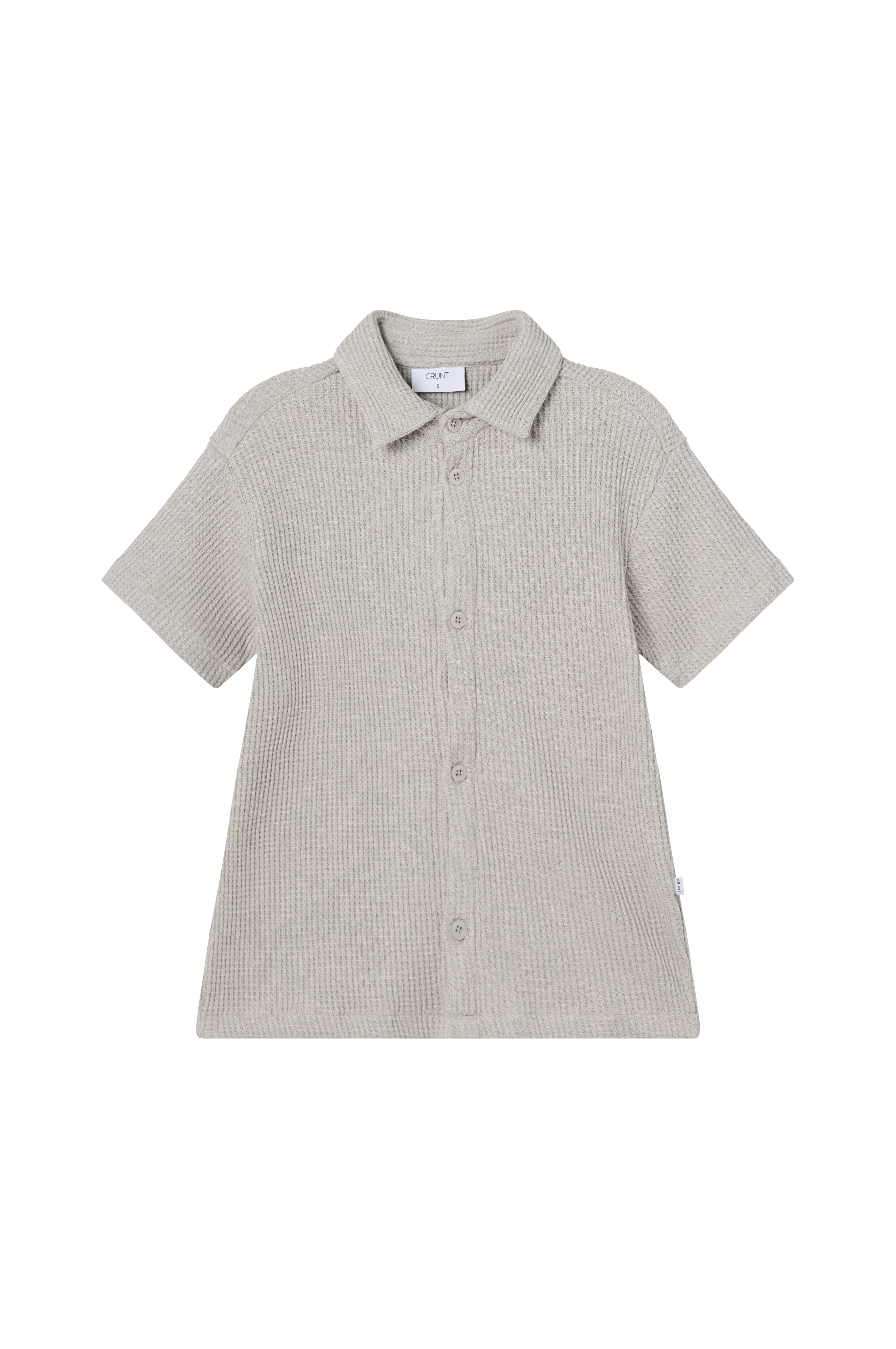 • Vaffelmønstret skjorte i blødt, elastisk materiale• Krave• Knaplukning• Kort ærme