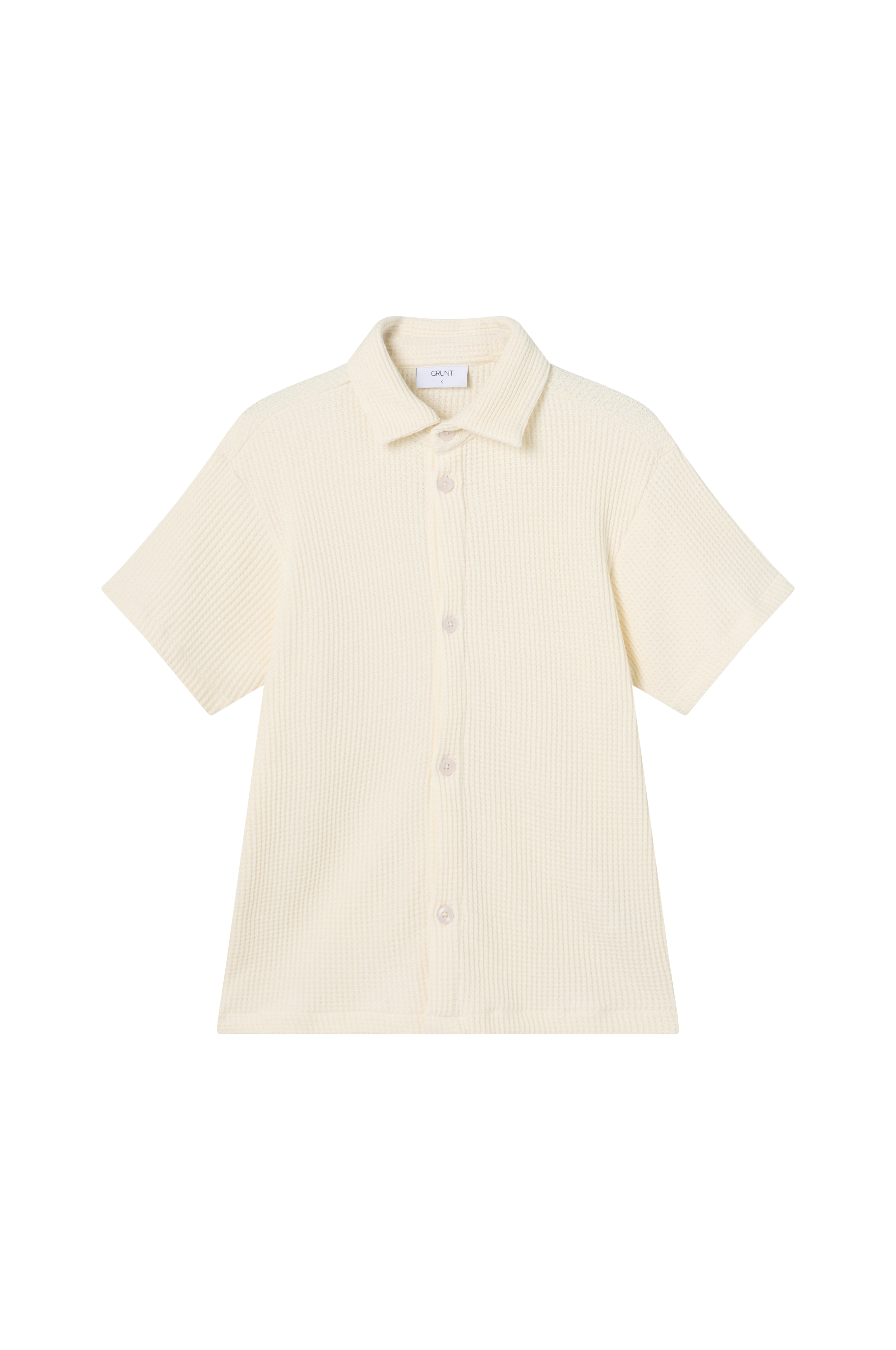 • Vaffelmønstret skjorte i blødt, elastisk materiale• Krave• Knaplukning• Kort ærme