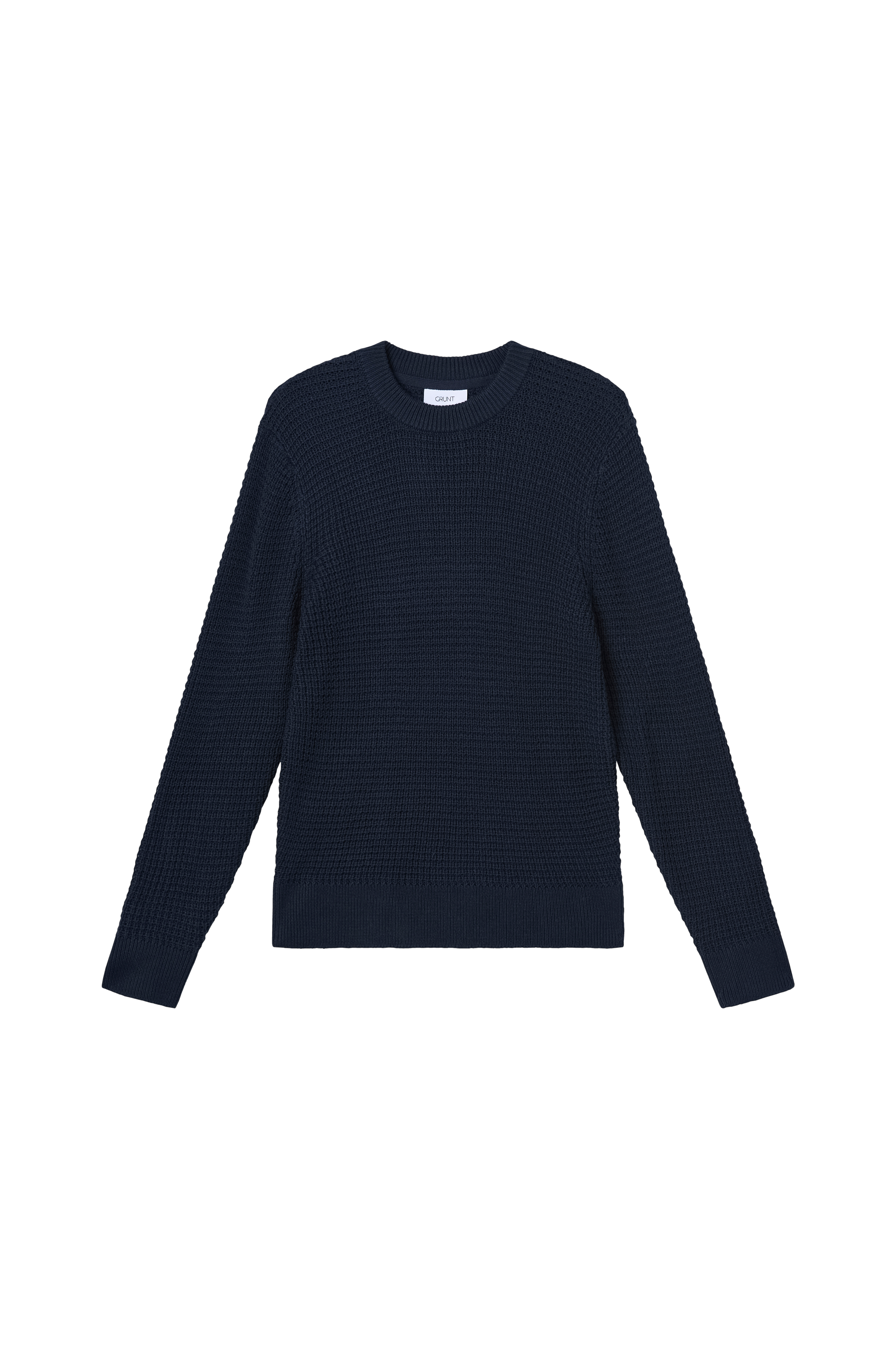 • Strukturstrikket trøje• Rund, ribbet halsudskæring• Ribstrik ved manchetterne og nederst