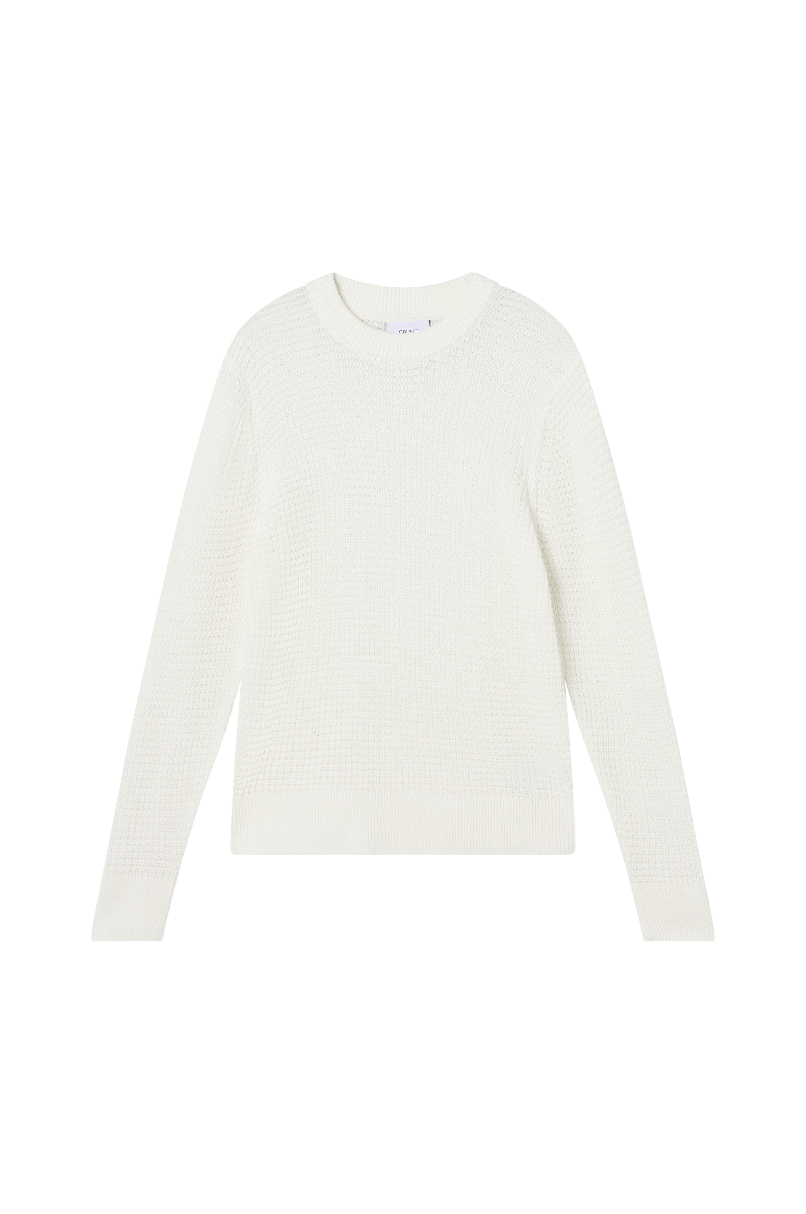 • Strukturstrikket trøje• Rund, ribbet halsudskæring• Ribstrik ved manchetterne og nederst