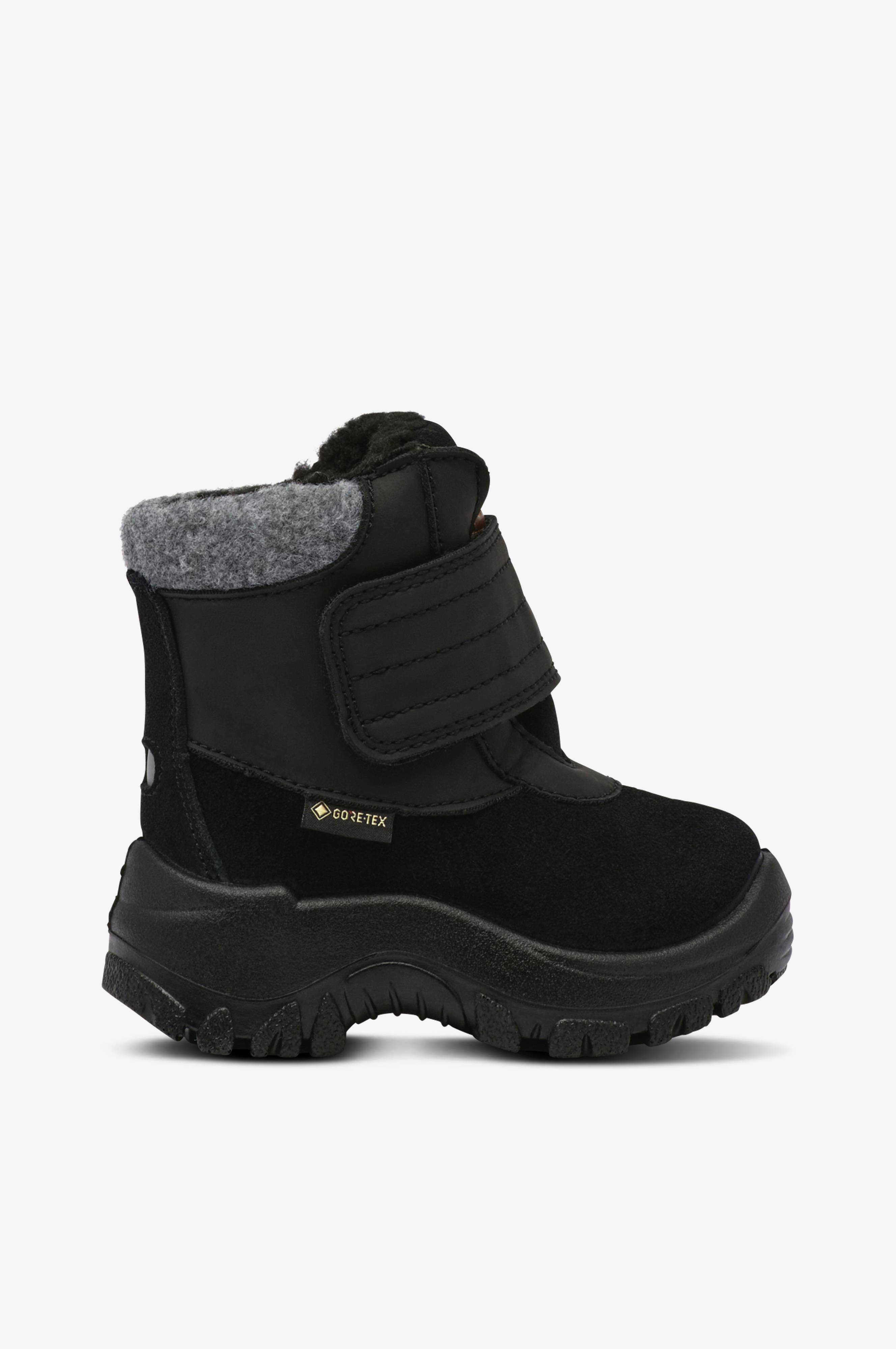• Varmt forede, vandtætte vinterstøvler i ruskind og PU• Vandtæt GORE-TEX®-membran• Lukning med bred velcrostrop• Reflekterende detalje bagpå• Varm foring i Pels-imitation• Ydersål i PU