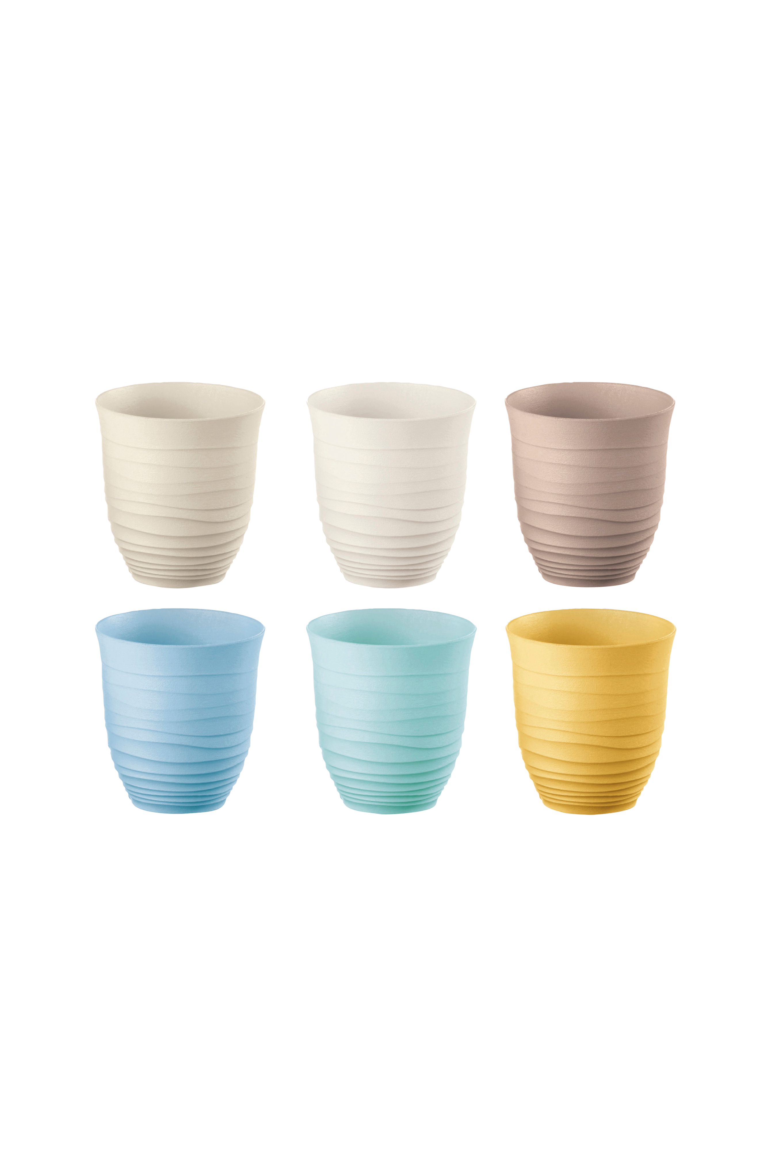 Sæt med 6 krus i genindvundet plast af PET-flasker.