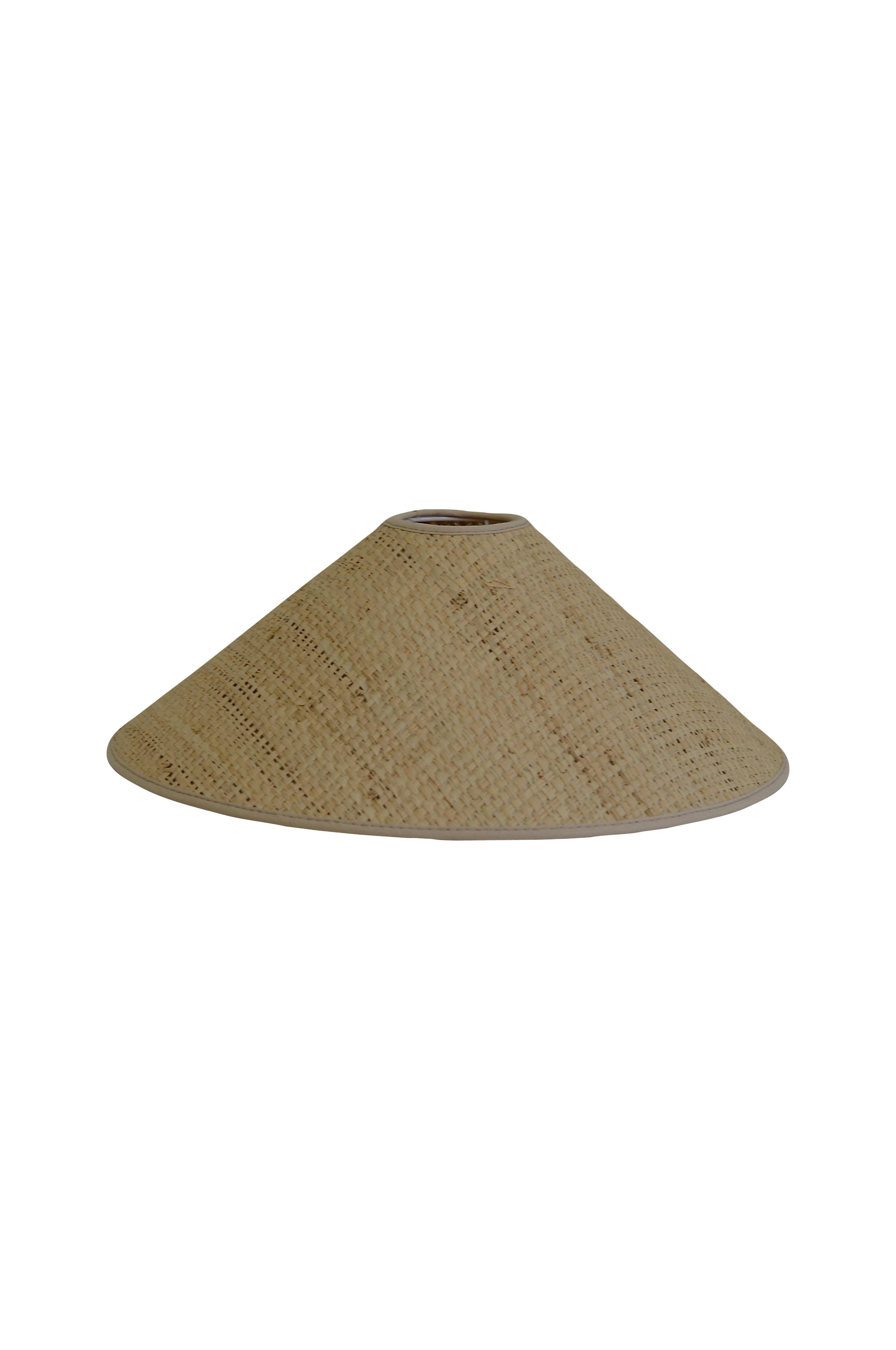 Lampeskærm i naturmateriale. 100% bast. Giver en smuk effekt, når den er tændt. Højde 13 cm, bredde forneden 50 cm, bredde foroven 90 cm. E27 bærering.
