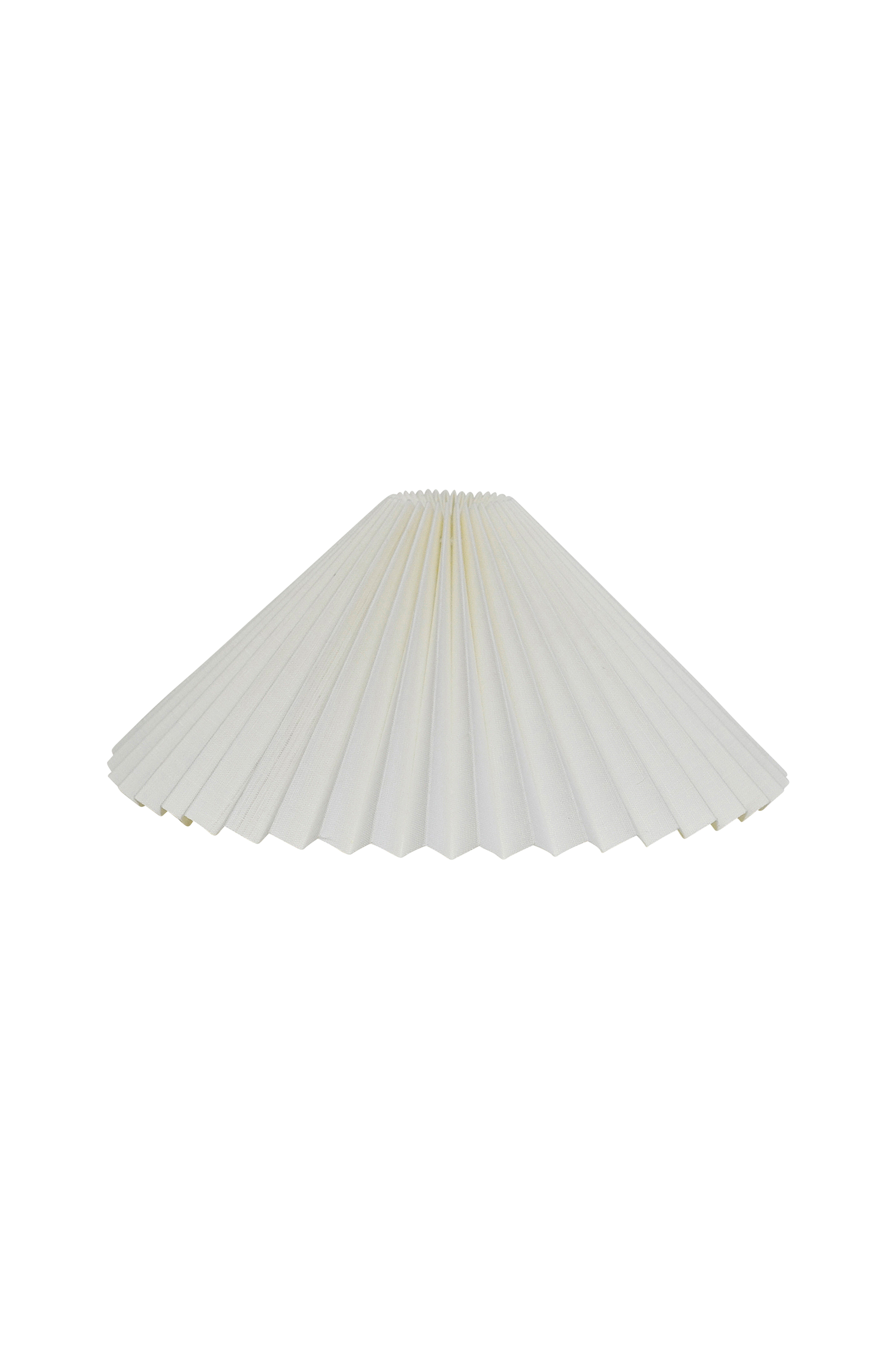 Plisseret lampeskærm i 100% hør. Højde 19,5 cm, bredde forneden 50 cm, bredde foroven 6 cm. E27 bærering.