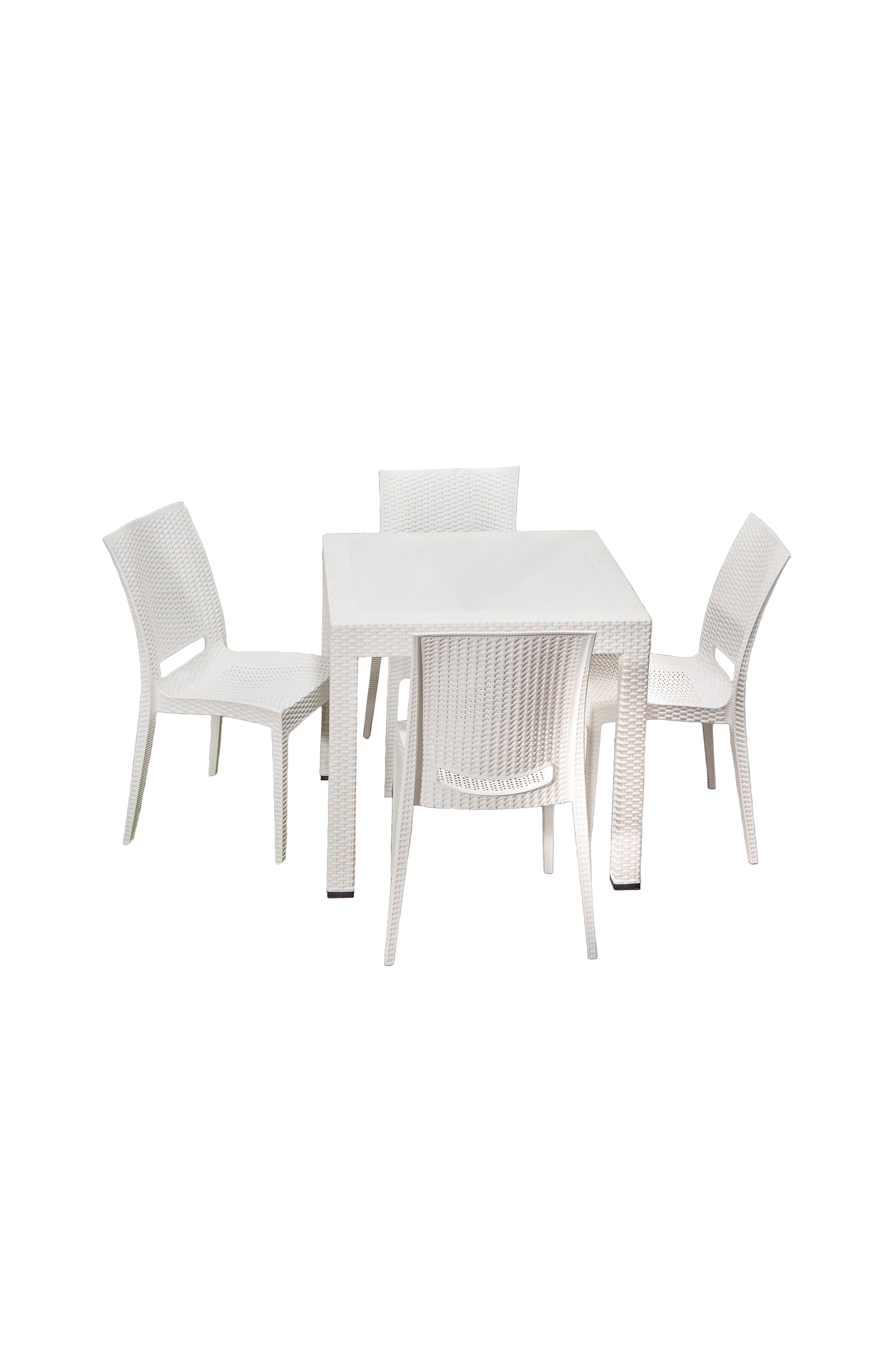 100% polypropylenstol: bredde: 43 cm højde: 87 cm dybde: 44 cmbord: bredde: 80 cm højde: 75 cm dybde: 80 cm