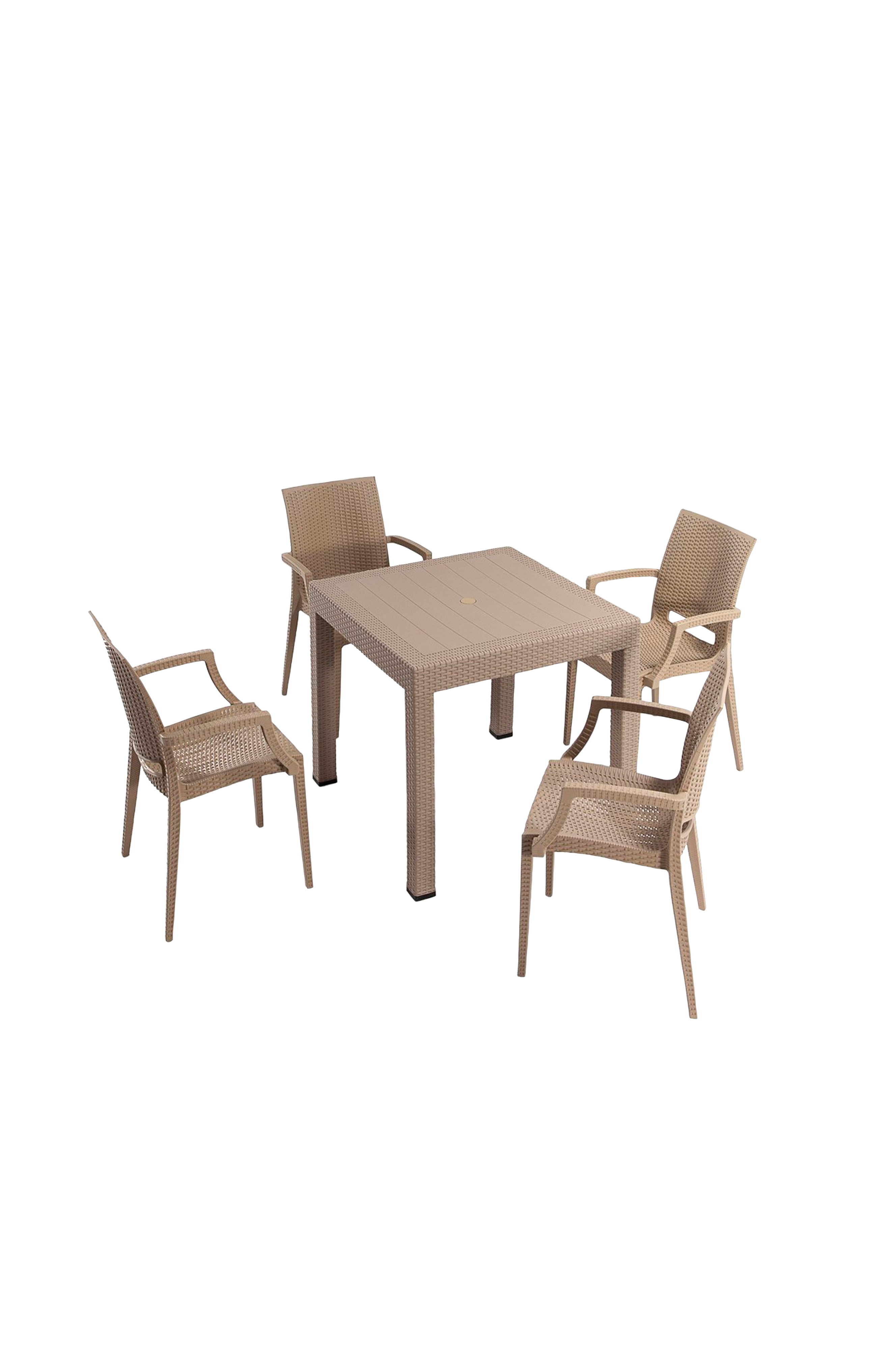 100% polypropylenstol: bredde: 52 cm højde: 88 cm dybde: 55 cmbord: bredde: 80 cm højde: 75 cm dybde: 80 cm