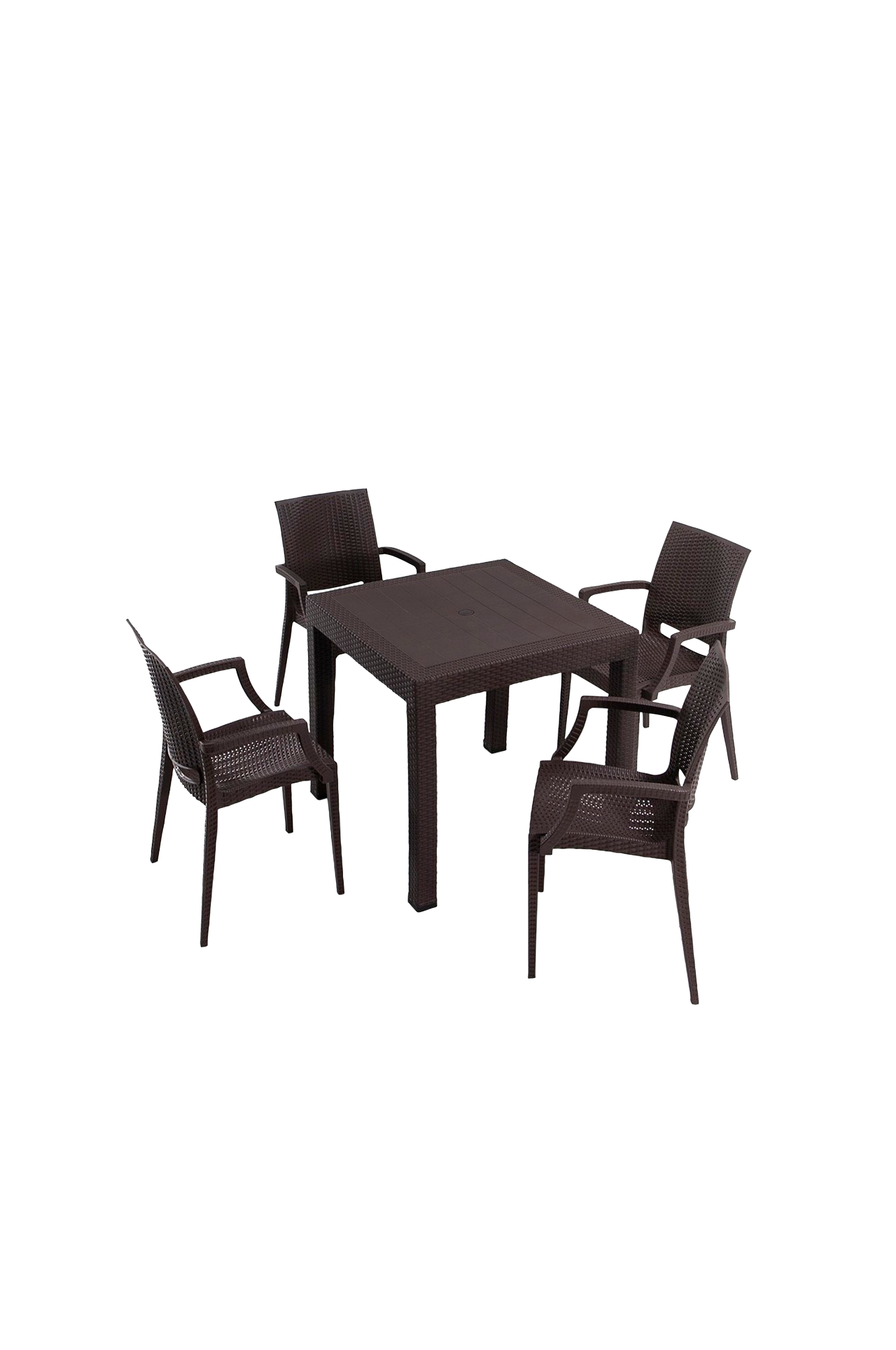 100% polypropylenstol: bredde: 52 cm højde: 88 cm dybde: 55 cmbord: bredde: 80 cm højde: 75 cm dybde: 80 cm