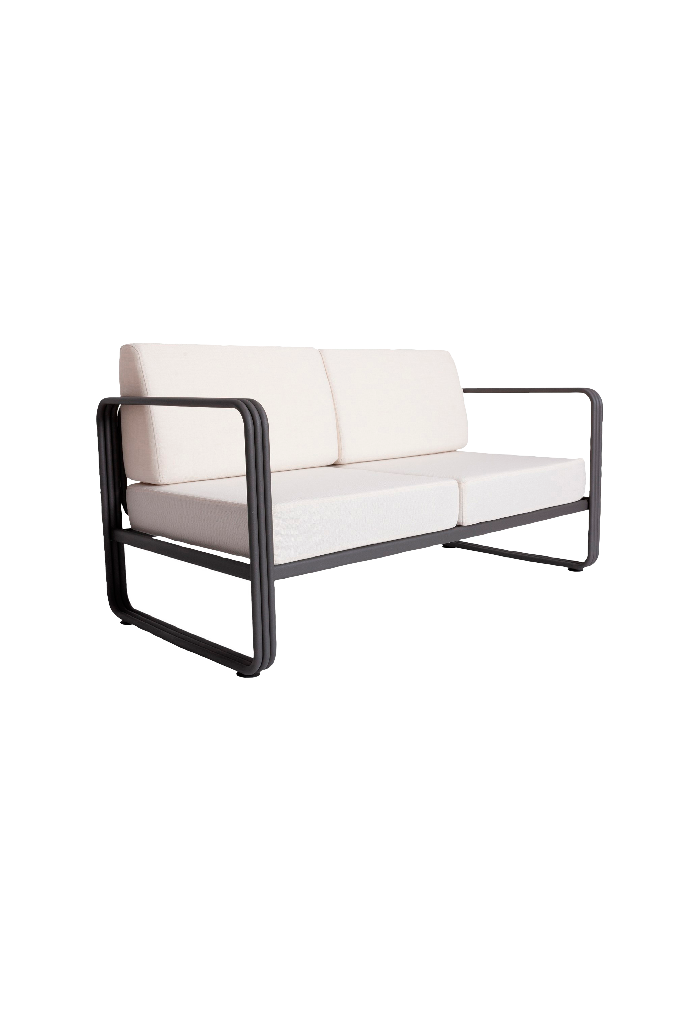 Stel: 100% metalstof: 100% polyester2-pers.sofaens mål: bredde: 155 cm højde: 67 cm dybde: 75 cm