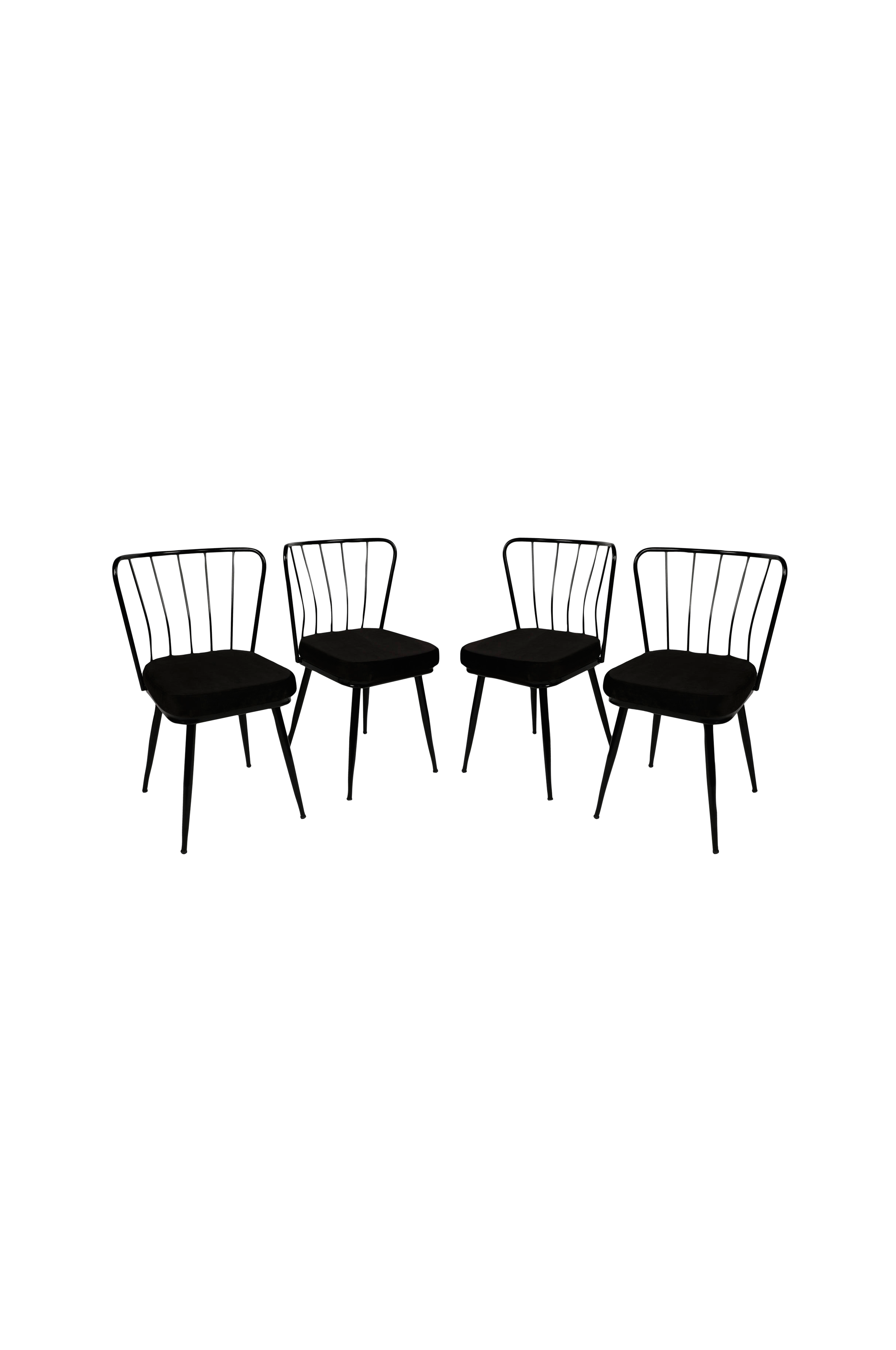 Stel: 100% metalsæde: velourstof/spånplade med melaminbelægningryglæn: metalbredde: 43 cm højde: 82 cm dybde: 42 cm (4 stk.)siddehøjde: 50 cmmaksimal belastning: 175 kg
