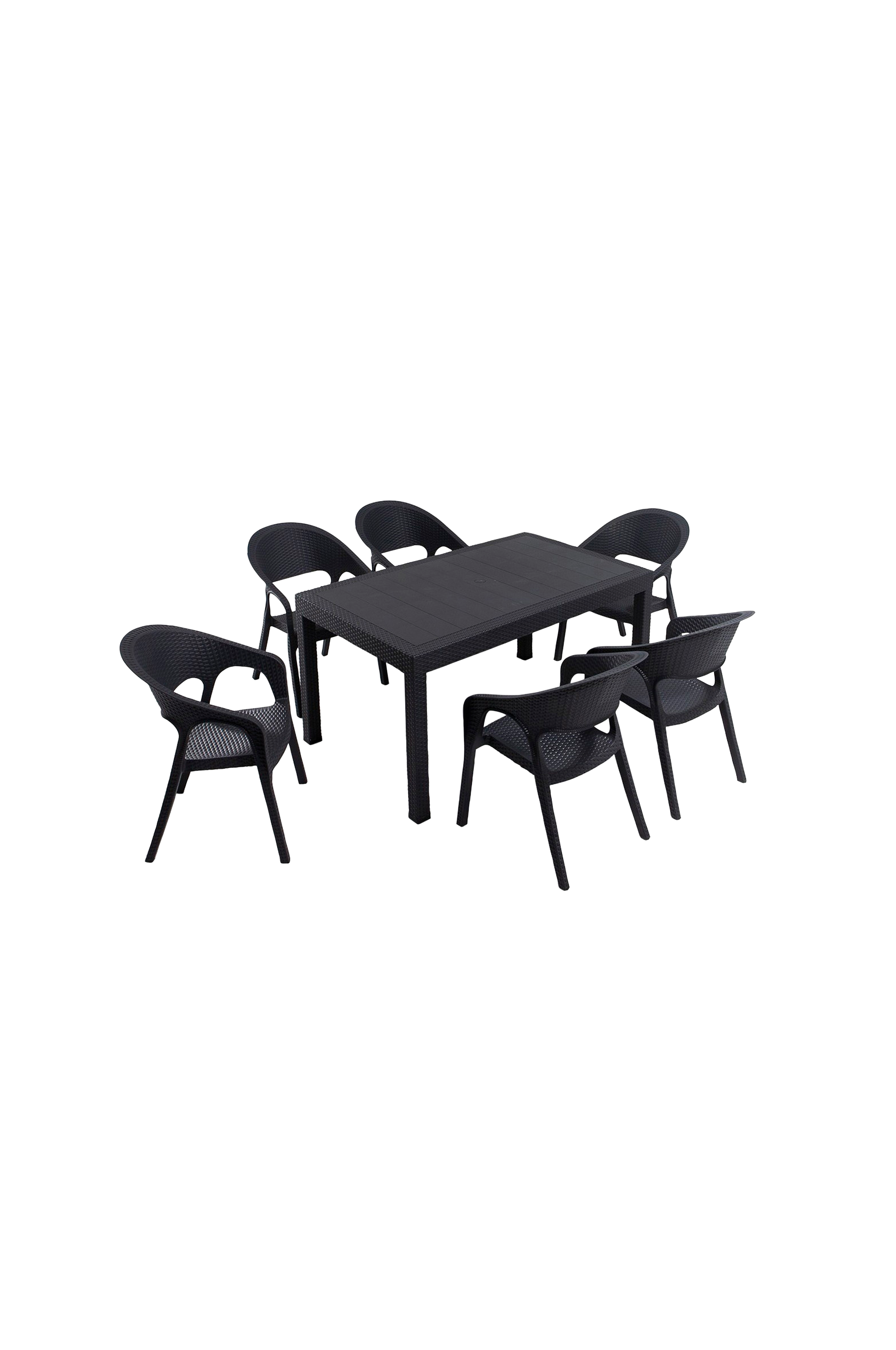 100% polypropylenstol: bredde: 58 cm højde: 84 cm dybde: 64 cmbord: bredde: 90 cm højde: 75 cm dybde: 150 cm