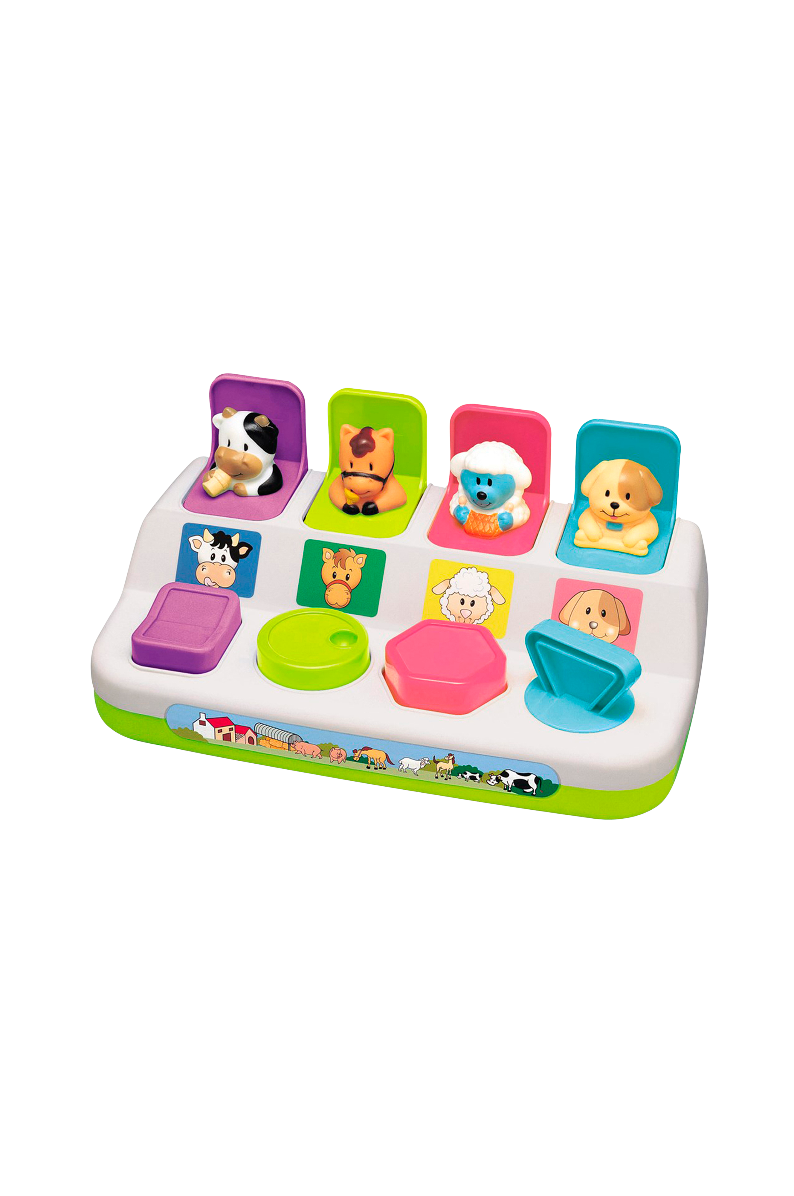 Klassisk pop op-leg! Med fire forskellige bondegårdsdyr, der popper op, når barnet trykker eller drejer på knapperne.