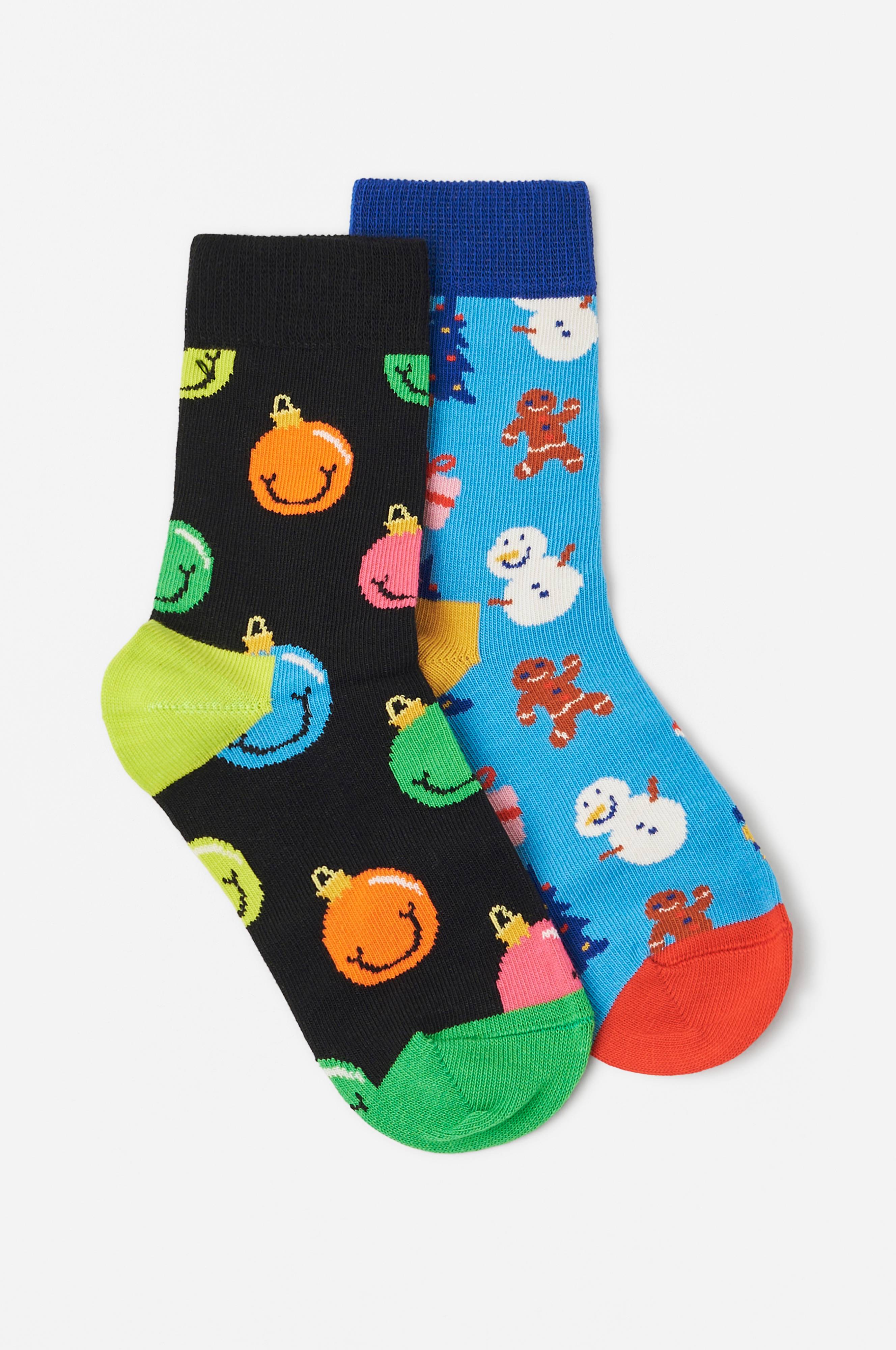 Gaveæske fra Happy Socks som indeholder to par strømper med mønstre i forskellige farver. Ribkant på skaftet.