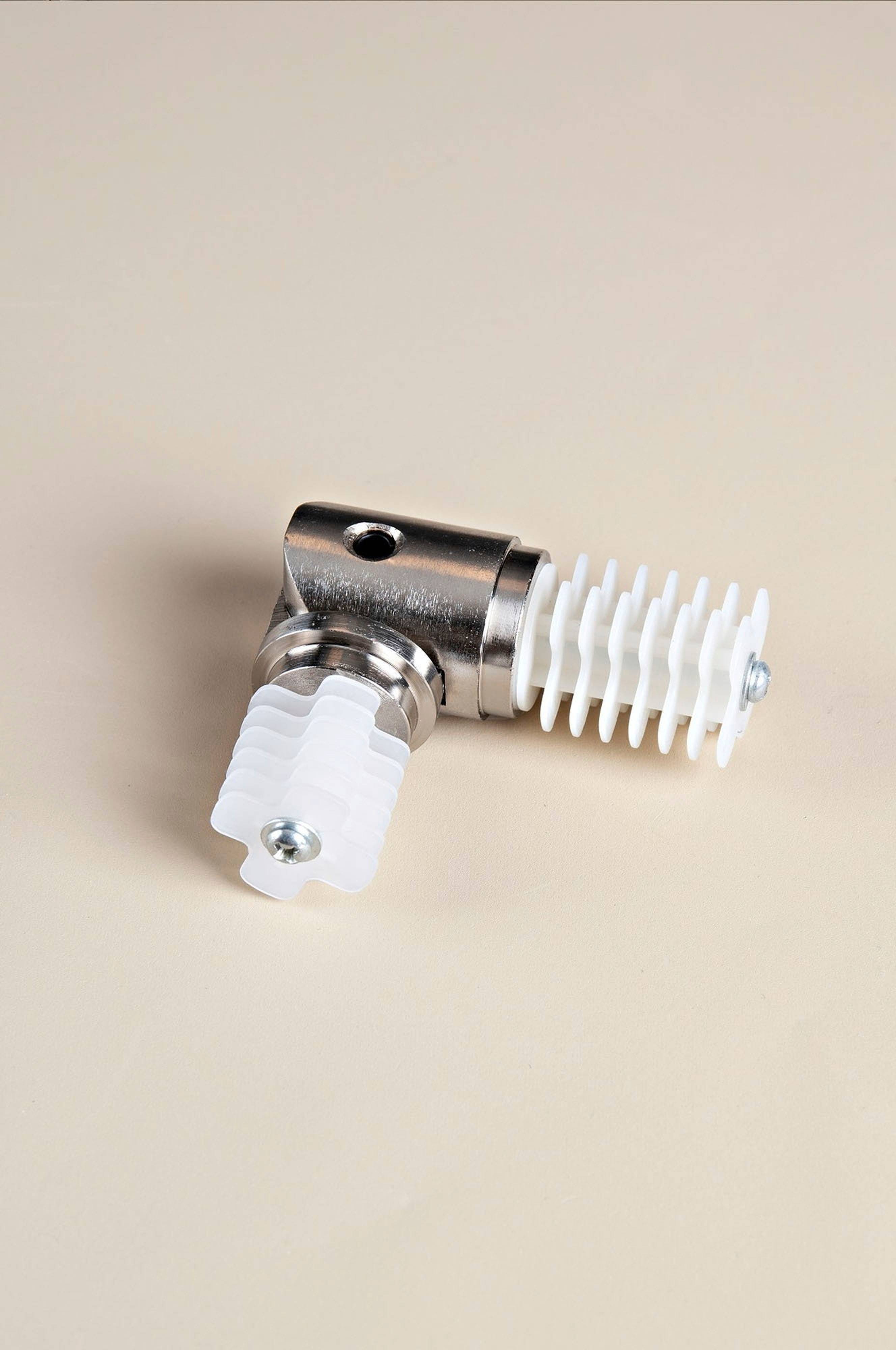 Hjørnestykke metal, bøjelig 90° til stang 25/28 mm i diameter.