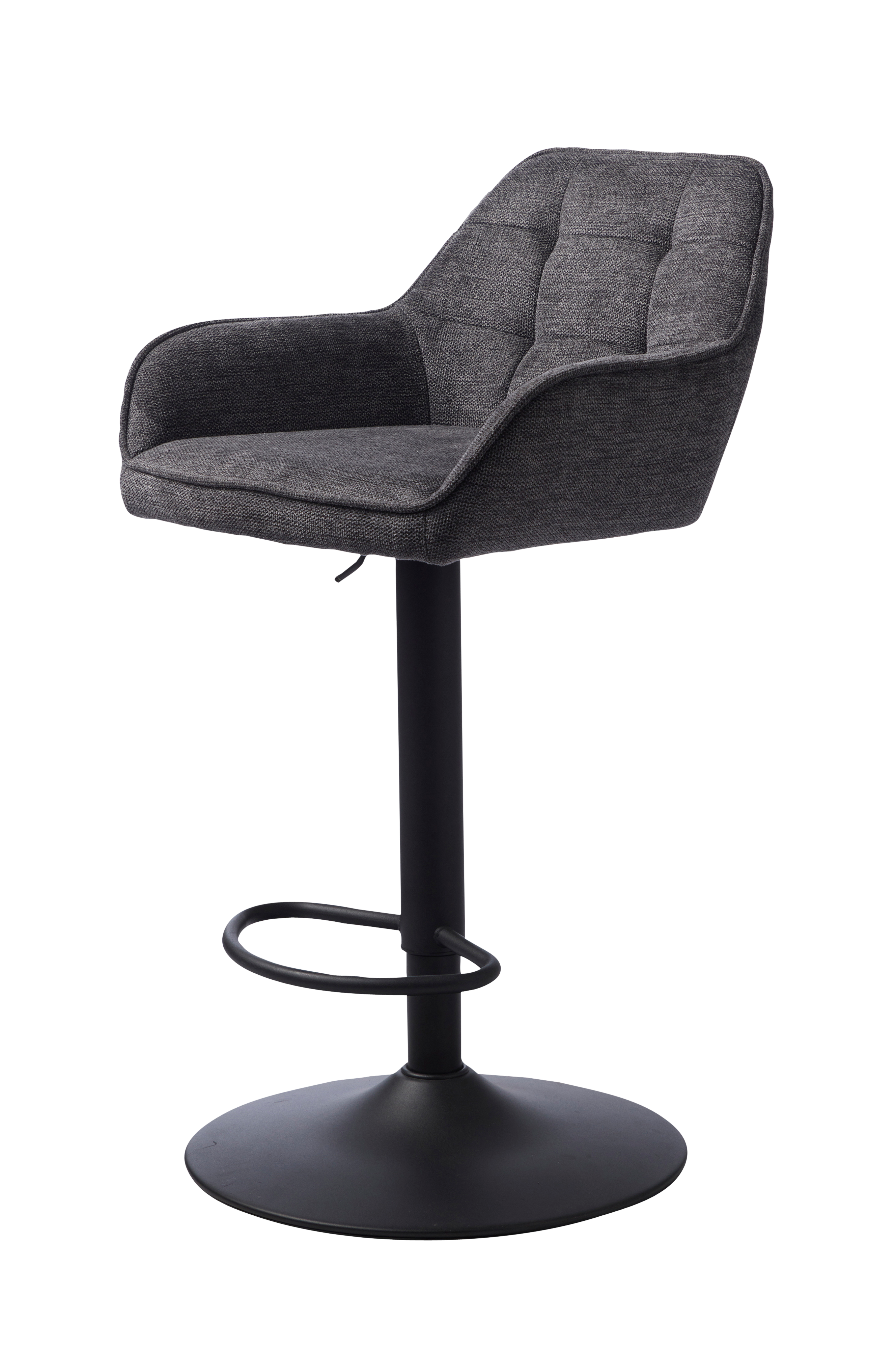 Denne polstrede firkantede barstol tilbyder både stil og komfort. Den justerbare højde spænder fra 88,5 cm til 103,5 cm med en siddehøjde på 65-80 centimeter, hvilket sikrer en perfekt pasform til enhver bar eller disk. Den understøttes af en robust trompetbase i metal, som giver stabilitet og et elegant, moderne look. Ideel til moderne indretning, hvor funktionalitet kombineres med elegant design.