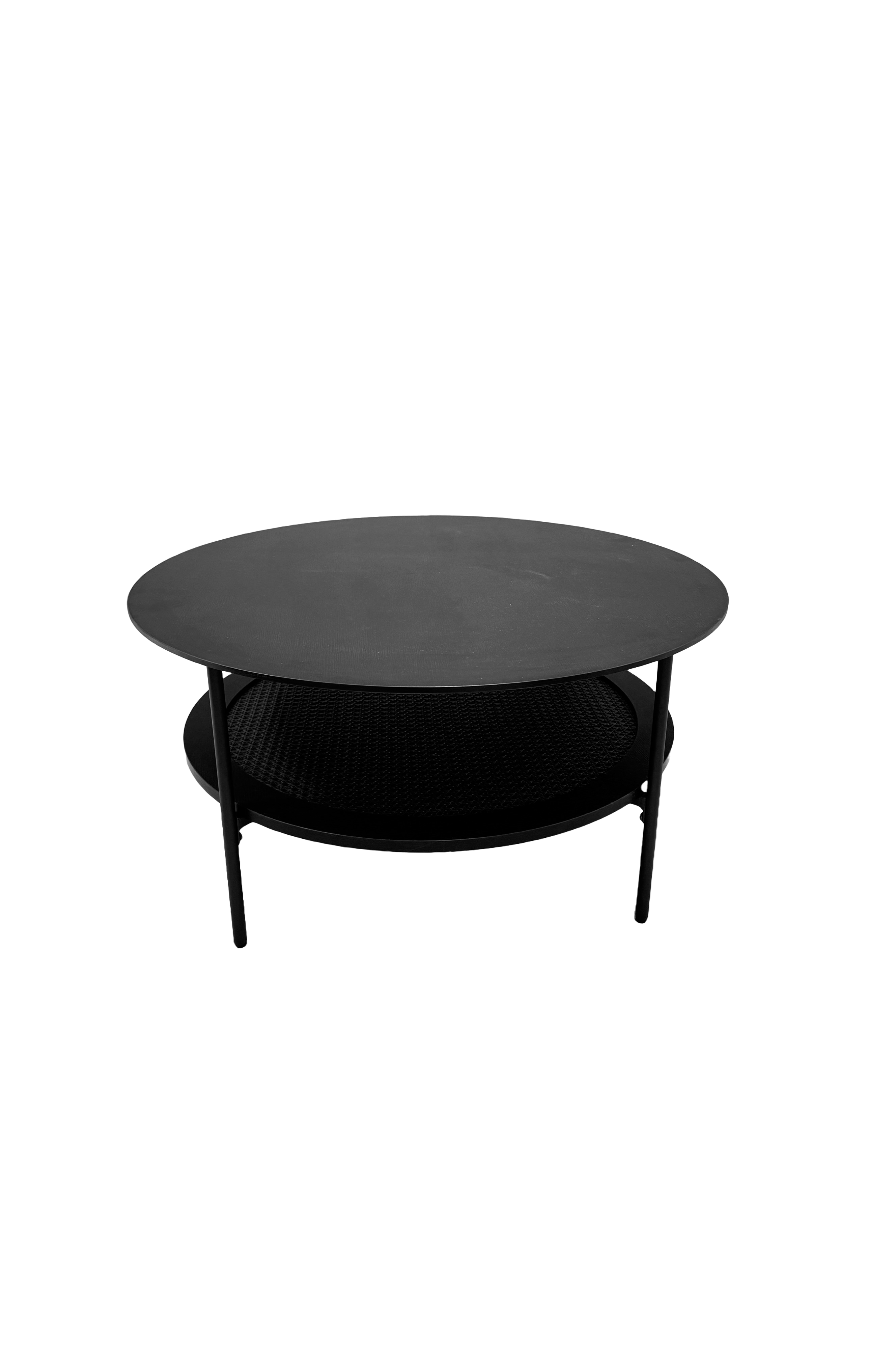 Denne runde coffee table har et slankt design med slanke metalben og en praktisk nederste hylde til ekstra opbevaring. Dens minimalistiske og moderne look gør den til et stilfuldt midtpunkt i enhver stue eller lounge.