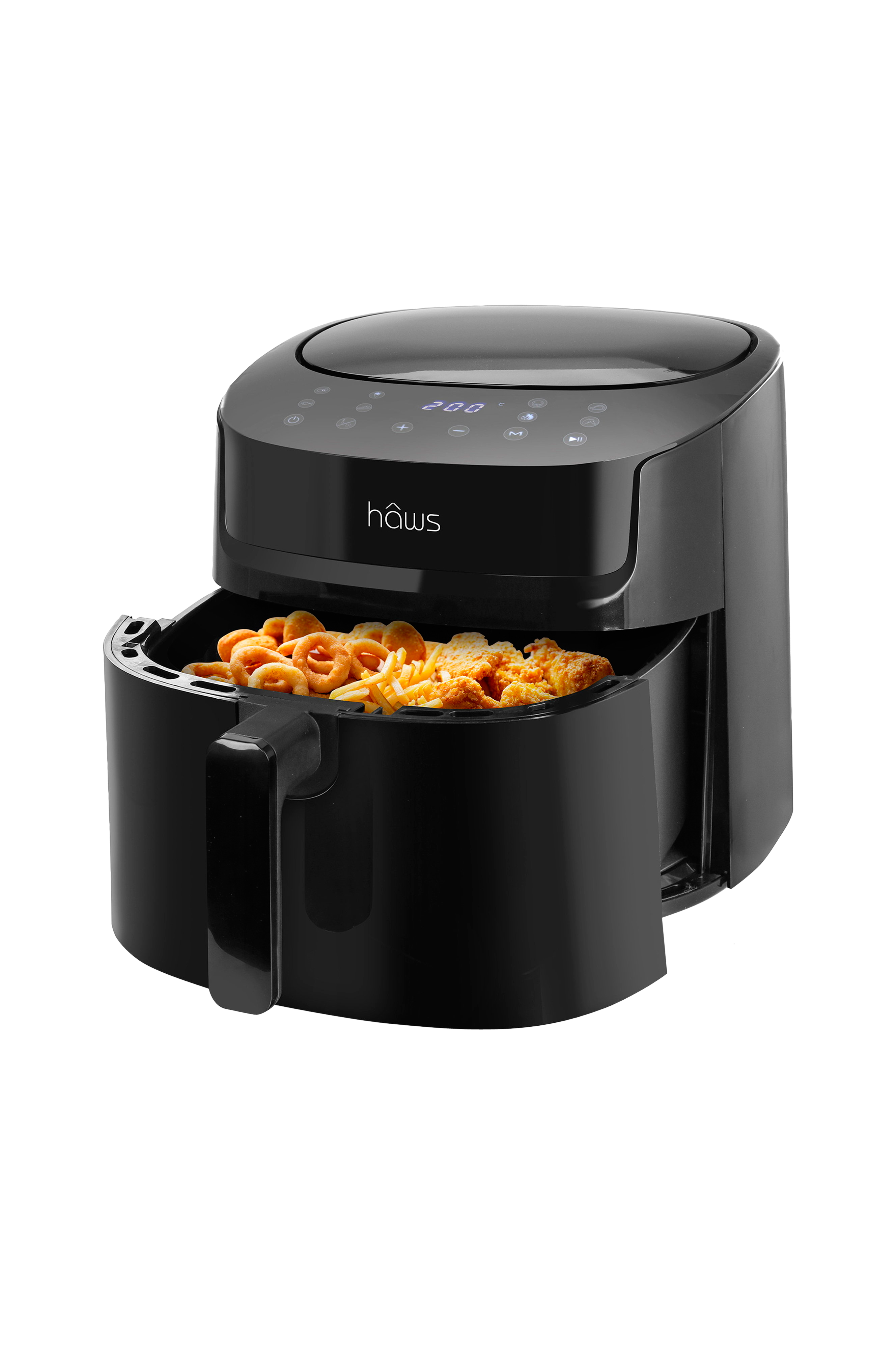 Med häws airfryer kan du nemt tilberede sprød og saftig mad uden høje kalorier og store mængder olie. Luften i airfryeren cirkulerer hurtigere, og tilberedningstiden er derfor kortere sammenlignet med en traditionel ovn. Den forkortede tilberedningstid kan spare på elregningen. Med en kapacitet på 7,2 liter kan du tilberede store portioner af dine yndlingsretter til familie eller venner på ingen tid. Cool touch-håndtaget gør det nemt og sikkert at håndtere boksen efter tilberedning. Boksen og stativet tåler opvaskemaskine, så det er nemt at rengøre. Du kan justere temperaturen til din smag med den justerbare termostat (fra 60-200°) og planlægge dine måltider med timerfunktionen eller bruge et af de 8 forudindstillede programmer. Den har en dehydreringsfunktion, som gør det muligt at tørre frugt, grøntsager og kød uden at miste smag og næringsværdi. Når maden er klar, hører du et lydsignal, som advarer dig om, at maden er klar. Med skridsikre fødder står den fast og stabilt på køkkenbordet. Belægningen er ilag, og den er pfas-fri.