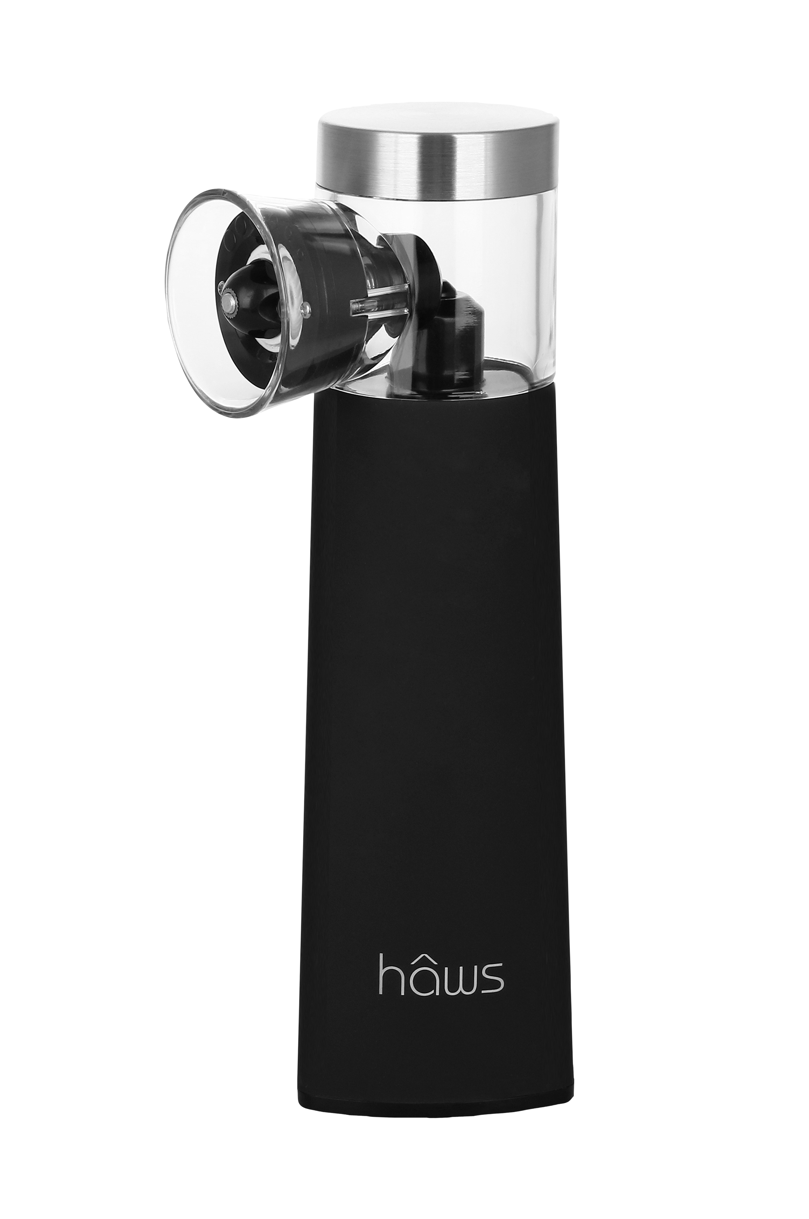 Den elektriske krydderikværn fra hâws er en universalkværn, der kan bruges til stort set alle tørre krydderier. Produktet kan bruges med kun én hånd og kræver ikke, at man vrider eller trykker for at frigøre krydderierne. Når kværnen vippes fremad, begynder den automatisk at kværne krydderierne. Et perfekt produkt at have i køkkenet, hvis man skal bruge én hånd til at røre og smage eller til personer med nedsat kraft/håndproblemer. Det er muligt at justere kværnens grovhed ved at dreje på spidsen.