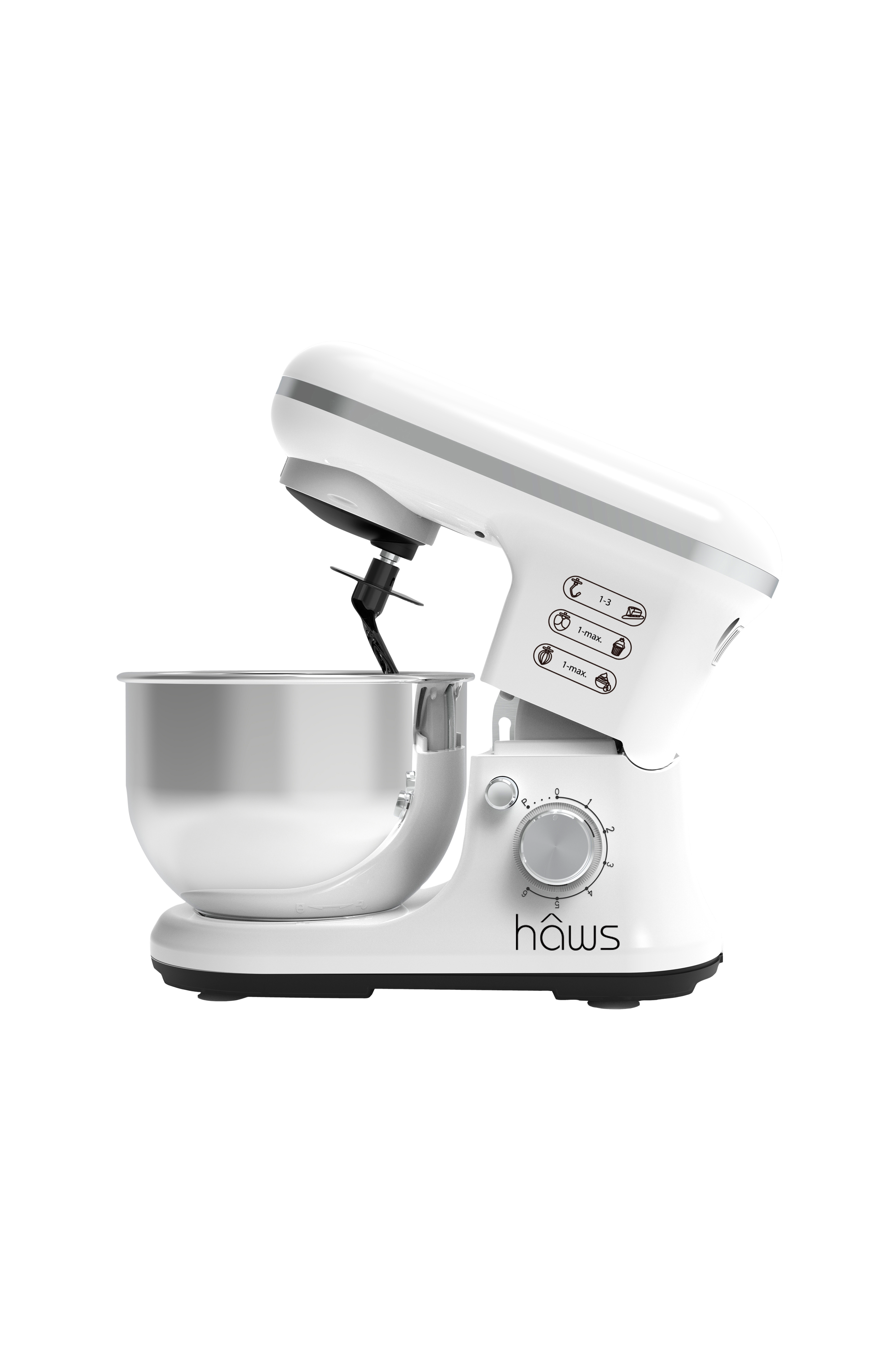 Hâws køkkenmaskine i et elegant sort design er en multifunktionel maskine med en høj ydeevne på 1200w. Produktet kan blande, piske og ælte afhængigt af, hvad du vil gøre. Ingredienserne kan blandes ved 6 forskellige hastigheder, hvilket gør denne køkkenmaskine meget effektiv, fordi den kan bearbejde de ønskede ingredienser på kort tid. Foodprocessoren er designet til at være ekstra brugervenlig, fordi hastigheden kan indstilles individuelt. Desuden behøver skålen ikke at blive taget af, mens den kører, fordi plastlåget er designet med et hul. Det gør det nemt at tilsætte ekstra ingredienser, mens produktet kører. Fås i sort, rød og hvid. Vælg din favorit!