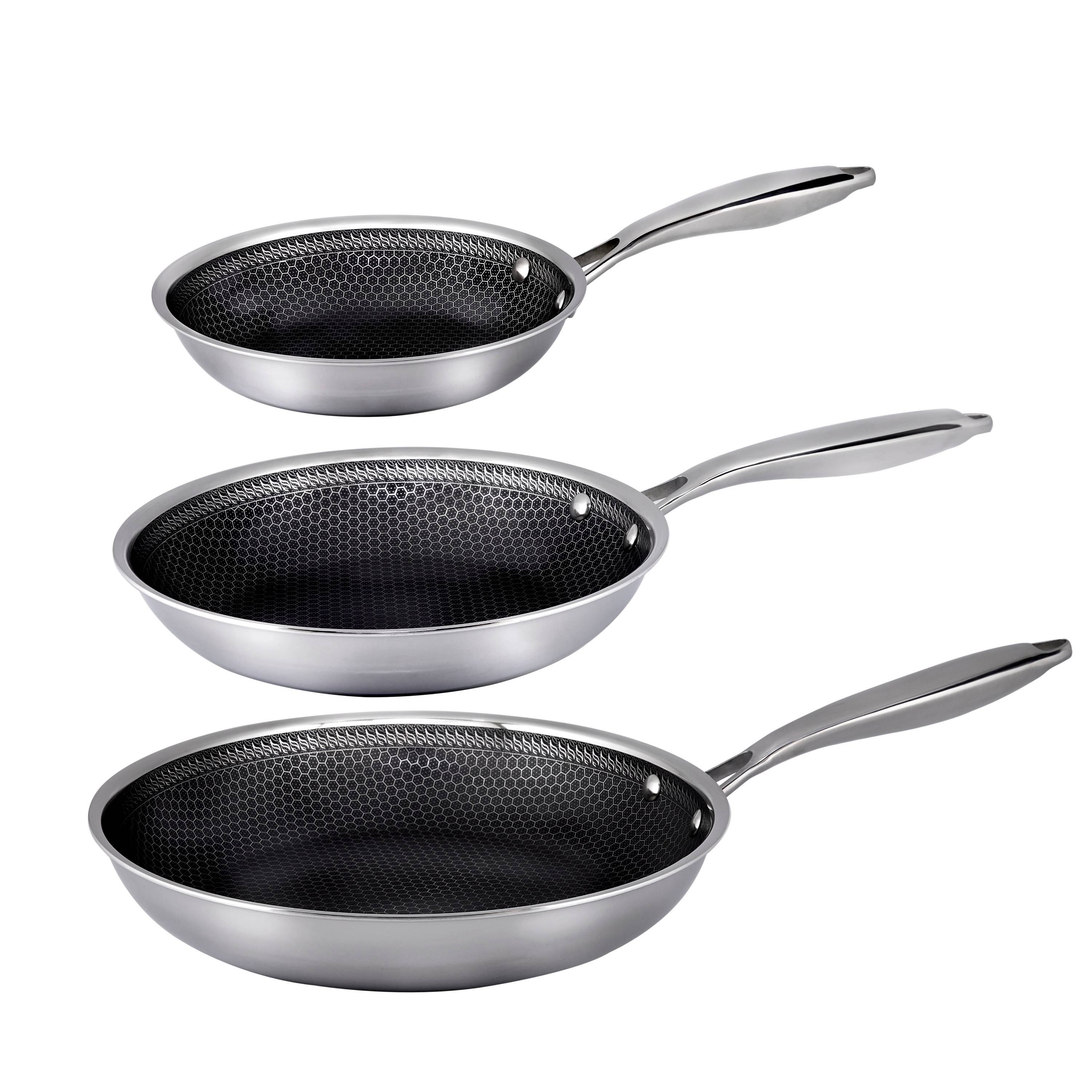 Opbyg din samling af stegepander med hâws santo-sættet, som indeholder tre forskellige størrelser - 20 cm, 24 cm og 28 cm - så du ikke er begrænset til én pandestørrelse eller altid skal tilberede den samme portion. Disse pander i rustfrit stål har en holdbar hybridkeramisk belægning, som gør dem ridsefaste og sikrer, at metalredskaber ikke beskadiger overfladen. Det anbefales at vaske panderne i hånden for at beskytte belægningen, men de kan også vaskes i opvaskemaskinen for ekstra bekvemmelighed. De er kompatible med alle varmekilder, inklusive induktion, og kan endda bruges i ovnen ved temperaturer op til 260°c, så du kan starte madlavningen på komfuret og afslutte den i ovnen. Den keramiske hybridbelægning giver en jævn varmefordeling og sikrer, at dine retter bliver smukt tilberedt hver gang.