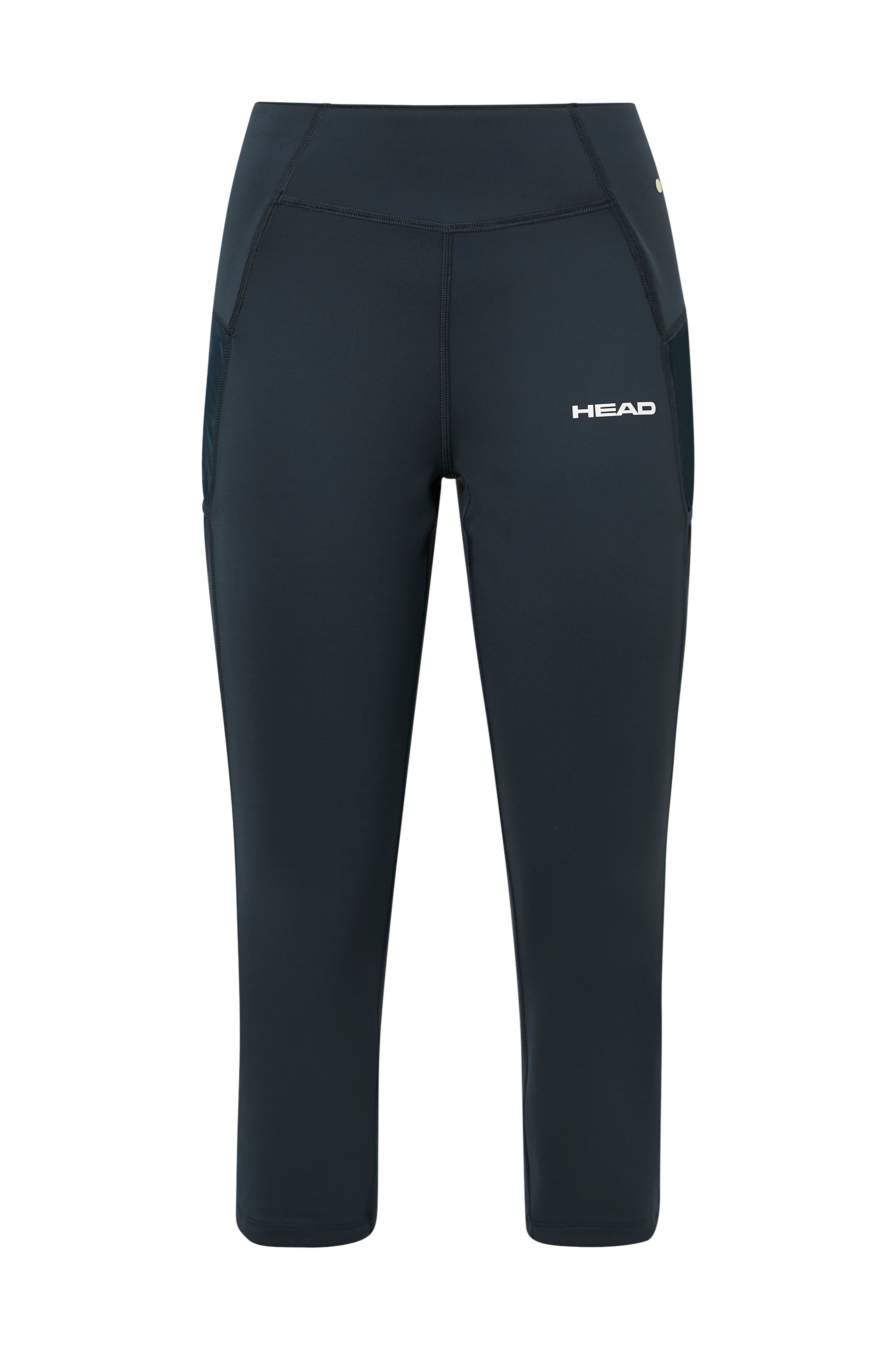 Padeltights/tennistights i 3/4-længde, lavet i et fugttransporterende og hurtigtørrende stretchmateriale. Elastisk, høj talje. Boldlommer i mesh på siderne.