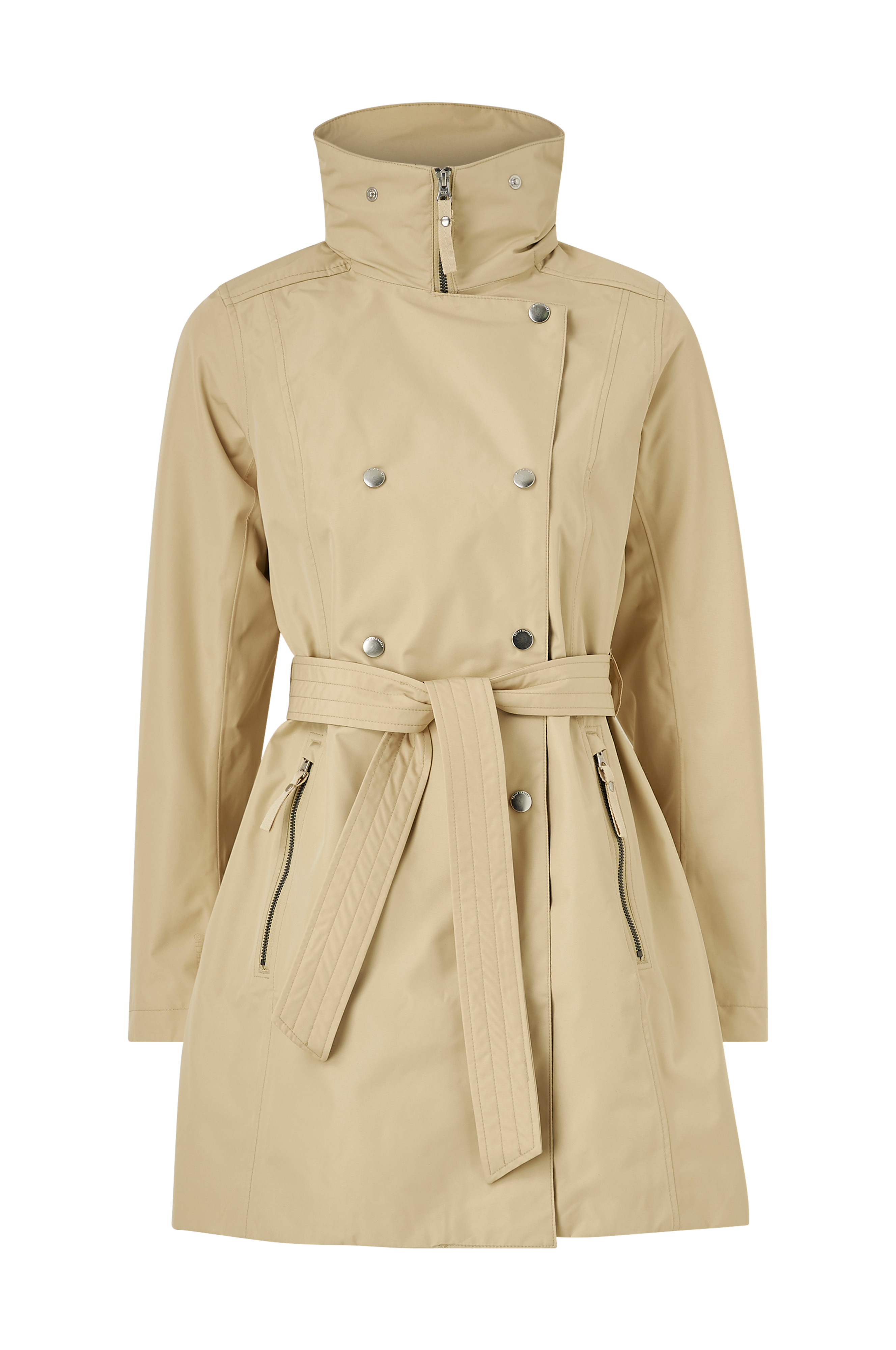 Regnfrakke W Welsey II Trench er en opdateret version af den populære trenchcoat med Helly Hansens fine funktioner. Helly Tech® Protection-stoffet er vandtæt og vindtæt med god åndbarhed og samtidigt er det smidigt. DWR-behandling (Durable Water Repellency) og forseglede sømme. Jakken er foret og har ventilation med meshstof under bærestykket bagpå. YKK®-lynlås foran med overfald med trykknapper. To lommer med YKK®-lynlås. Justerbar hætte som kan foldes ind og skjules i kraven. Bindebælte i taljen. Broderet Helly Hansen-mærke på ærmet. Længde bagpå ca. 89 cm i str. M.