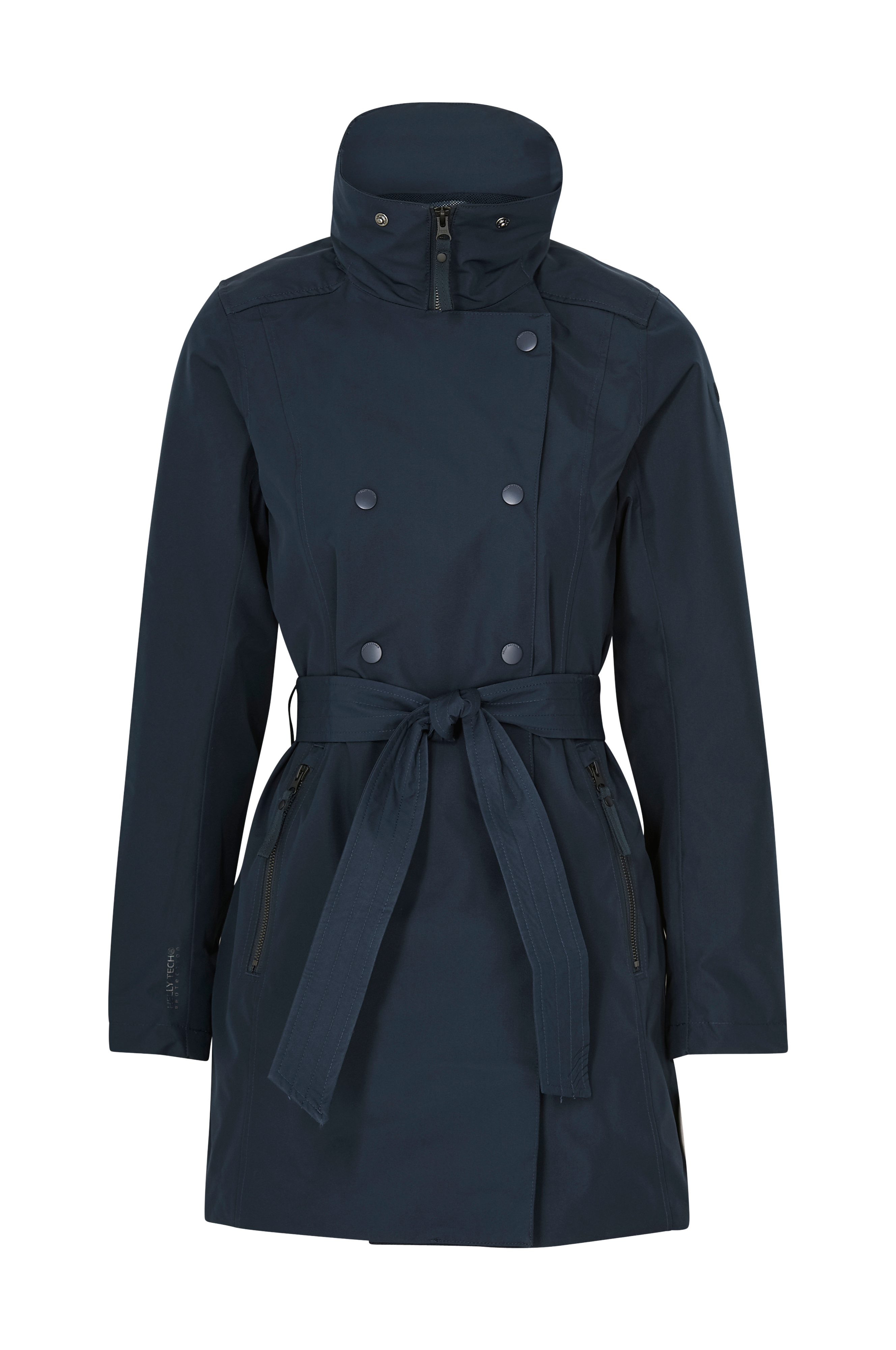 Regnfrakke W Welsey II Trench er en opdateret version af den populære trenchcoat med Helly Hansens fine funktioner. Helly Tech® Protection-stoffet er vandtæt og vindtæt med god åndbarhed og samtidigt er det smidigt. DWR-behandling (Durable Water Repellency) og forseglede sømme. Jakken er foret og har ventilation med meshstof under bærestykket bagpå. YKK®-lynlås foran med overfald med trykknapper. To lommer med YKK®-lynlås. Justerbar hætte som kan foldes ind og skjules i kraven. Bindebælte i taljen. Broderet Helly Hansen-mærke på ærmet. Længde bagpå ca. 89 cm i str. M.