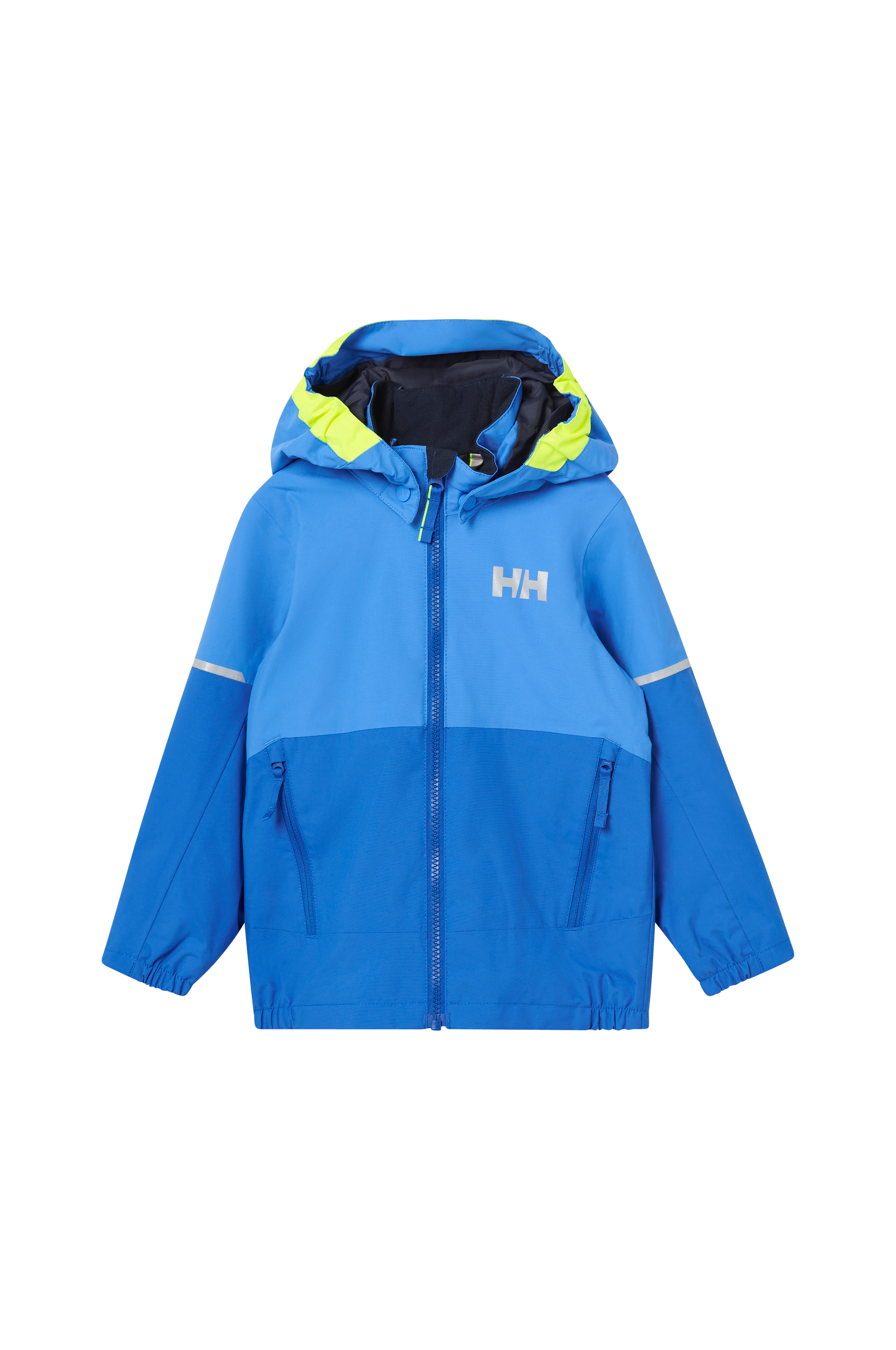 Vandtæt og vindtæt hverdagsjakke til børn. Helly Tech® Performance-tekstil og forseglede sømme mod regn og vind. Det tynde for sørger for at fugten transporteres væk fra kroppen. Aftagelig hætte med signalstribe. Lynlåsene er i robust YKK®-design og ærmerne er formede for maksimal bevægelighed.