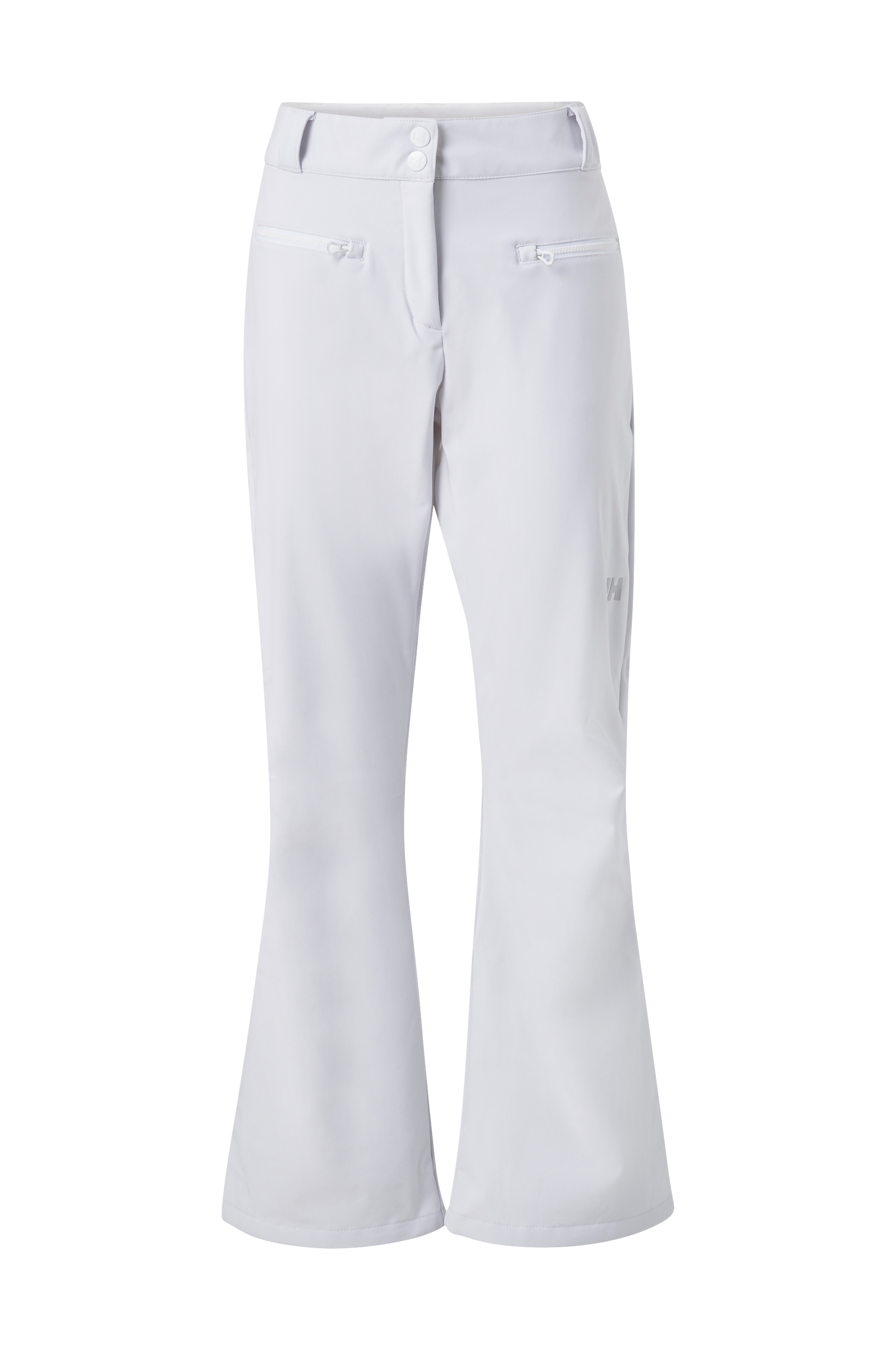 Skibukser W Bellissimo 2 Pant fra Helly Hansen med en klassisk og feminin tætsiddende silhuet. Bukserne er fremstillet i vind- og vandtæt softshell med tovejsstretch, og er lige flotte på pisten som til afterski. En børstet, blød inderside og højt snit bagpå giver ekstra varme også når det er koldest. Alle lynlåse er fra YKK.
