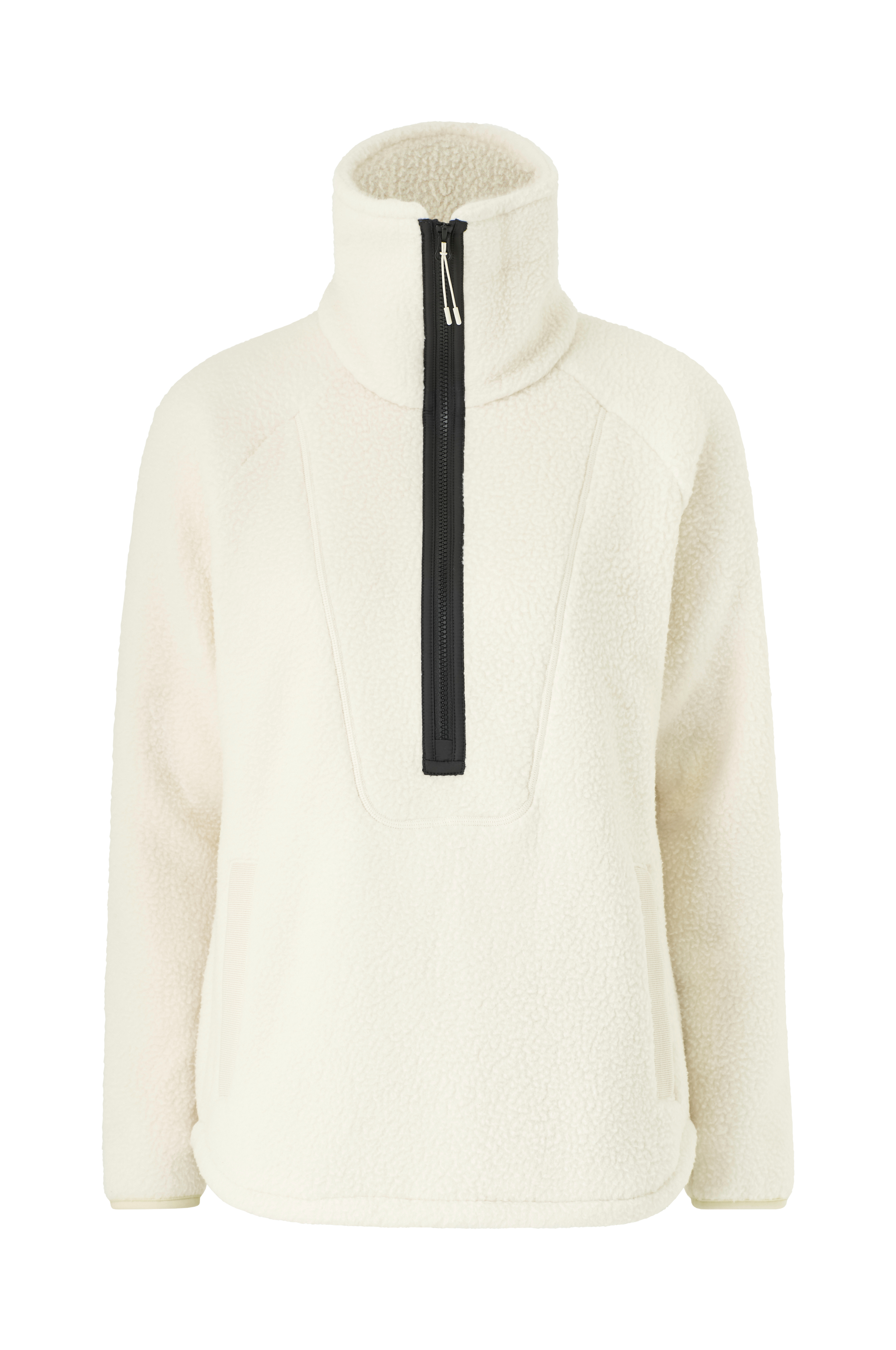 • Blød Pullover i pile med høj opretstående krave• Halvlang lynlås• Sidelommer med ribbet kant• Elastiske båndkanter ved ærmeafslutningerne og ved nederste kant• Afrundet søm