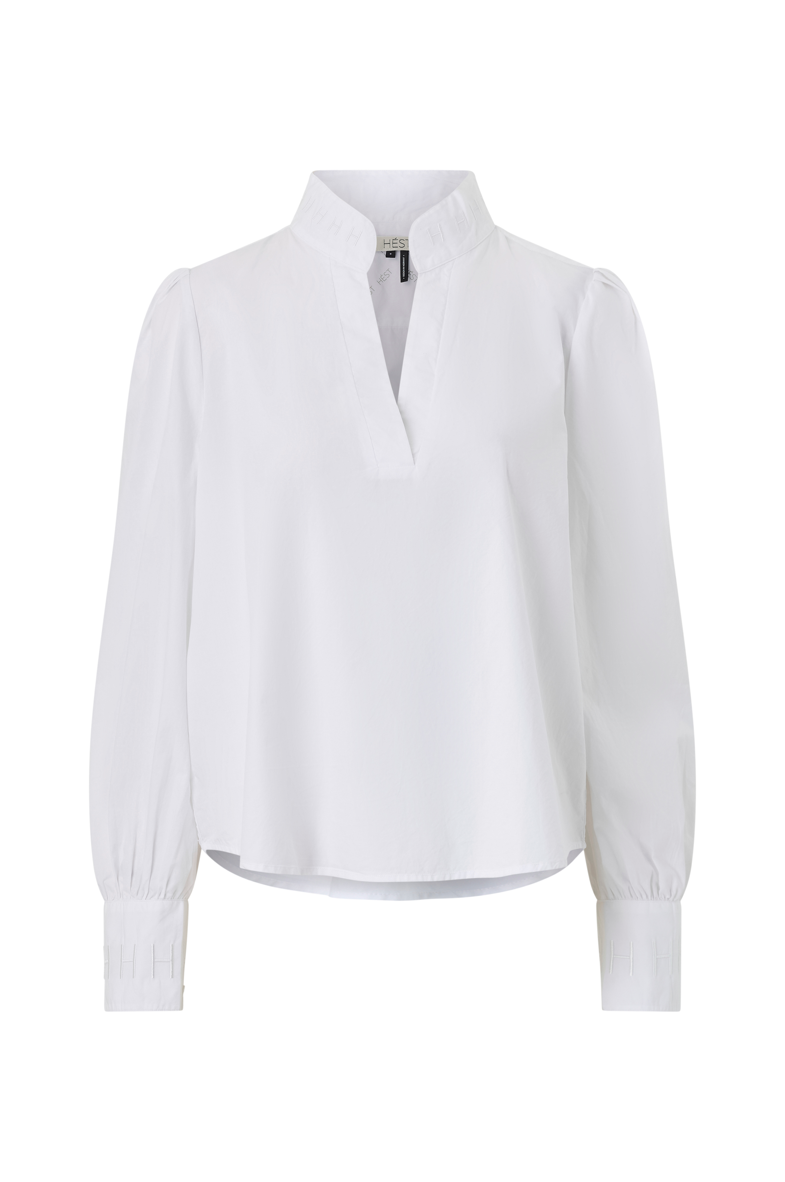 • Bluse i bomuld med afslappet pasform• V-formet halsudskæring med krave• Lange pufærmer med manchetter ved manchetterne• Broderet logo på kraven og på manchetterne• Afrundet søm