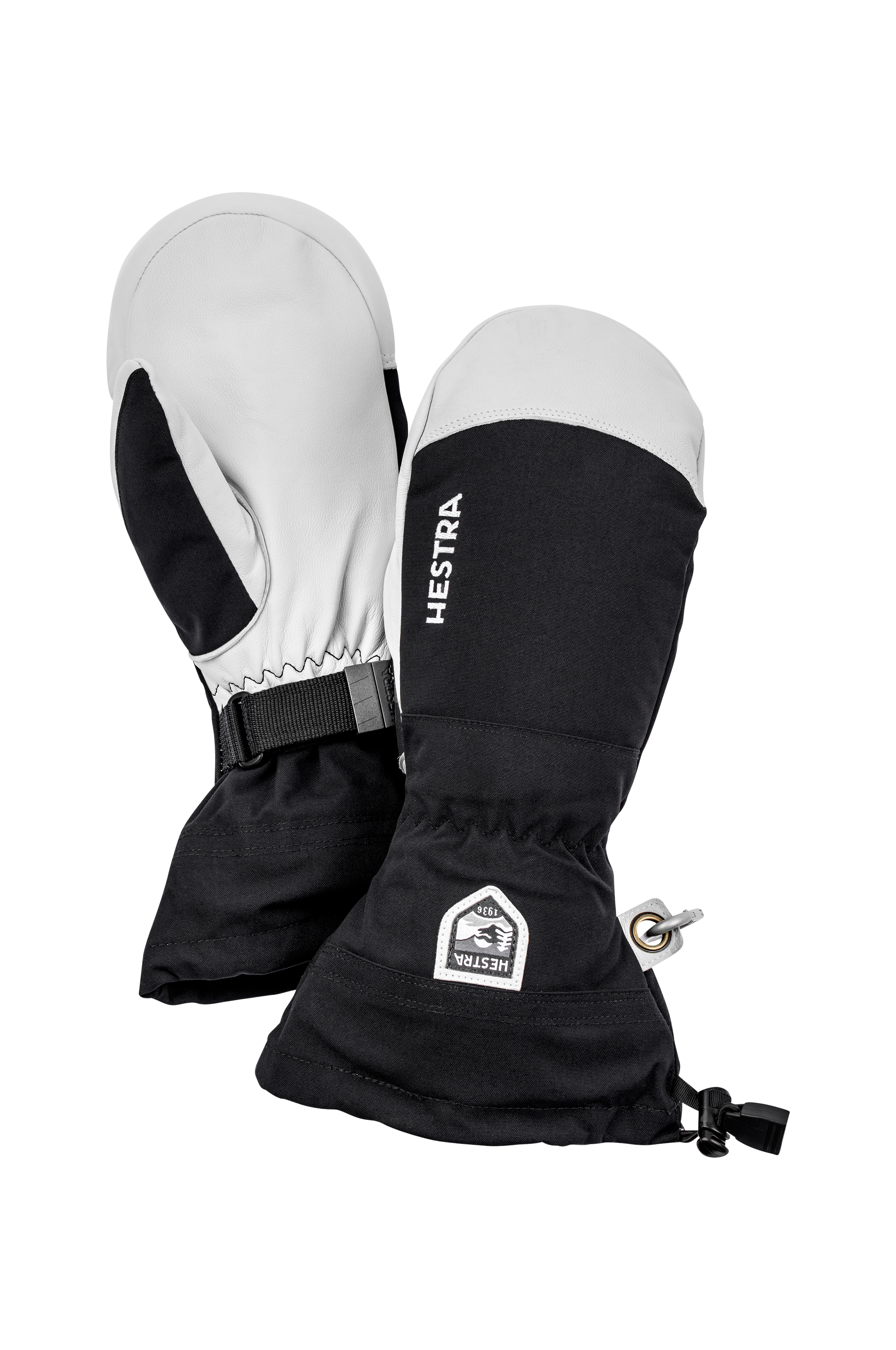 Luffer Army Leather Heli Ski Mitt fra Hestra. Hestras mest kendte handske er en moderne klassiker med mange funktioner. Længere model til dig som kører i meget løs sne og har brug for en slidstærk og varm kompagnon på bjerget. Kraftig, vind- og vandtæt polyamidvæv på oversiden og Army Goat Leather (imprægneret gedeskind) på håndfladen. Isolering med fiberfyld. Aftageligt Bemberg fleecefor. Justerbar velcrorem og elastik om håndleddet. Åbning med løbegang. Karabinhage.