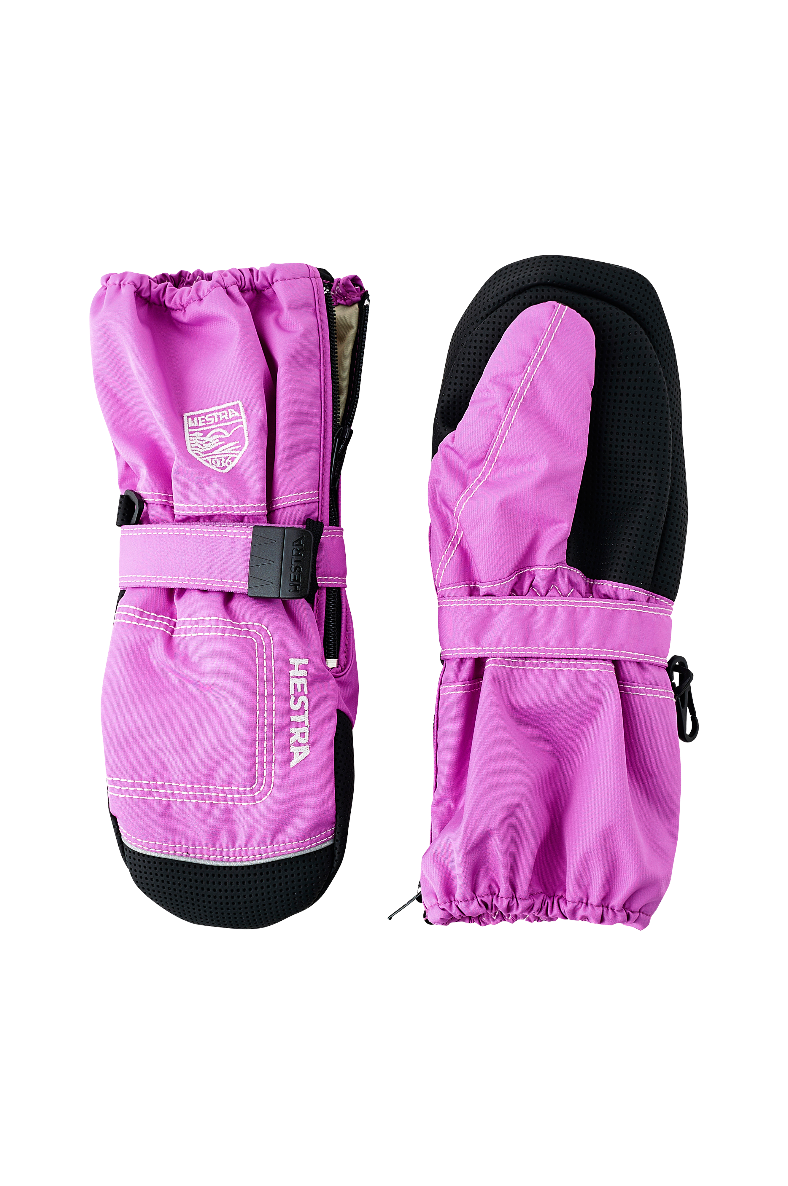 Vanten har for, så den holder hånden lun. Og så er spidsen af vanten i vandafvisende stof, så hænderne ikke bliver våde ved leg i sneen. Lynlåsen gør det virkelig nemt at få vanterne…