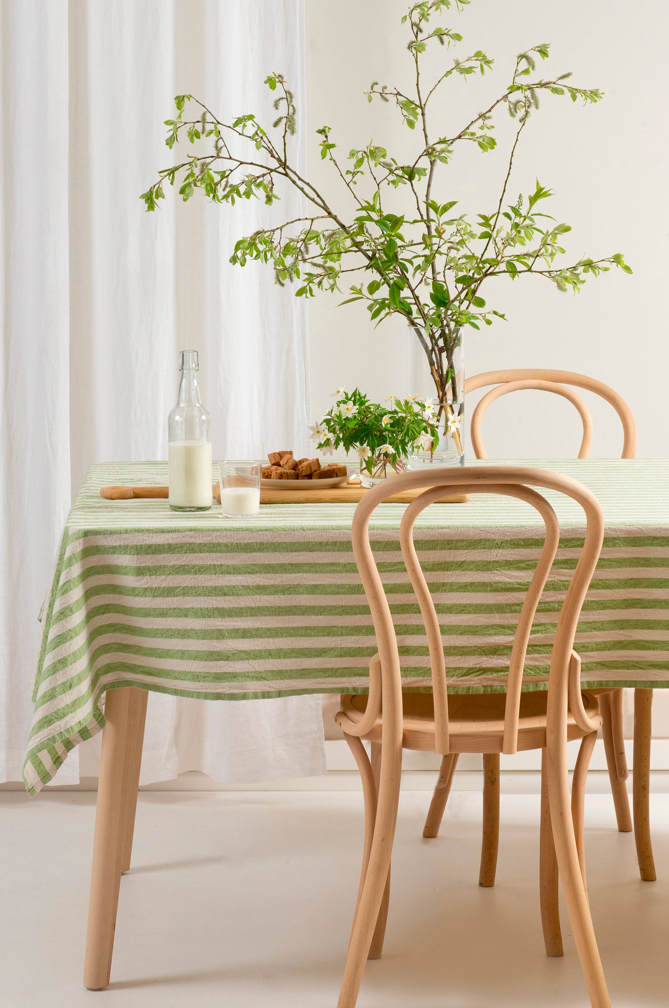 Riviera er en kollektion i halvlinned med klare striber i sommerlige farver. Dugen er vasket efter syning, hvilket giver et afslappet udtryk og en blød fornemmelse. Riviera er nem at pleje: Efter vask tørretumbles den let ved lav temperatur, og rynkerne bevares for en livlig fornemmelse. Maskinvask 60°C, krympning 3-5%.
