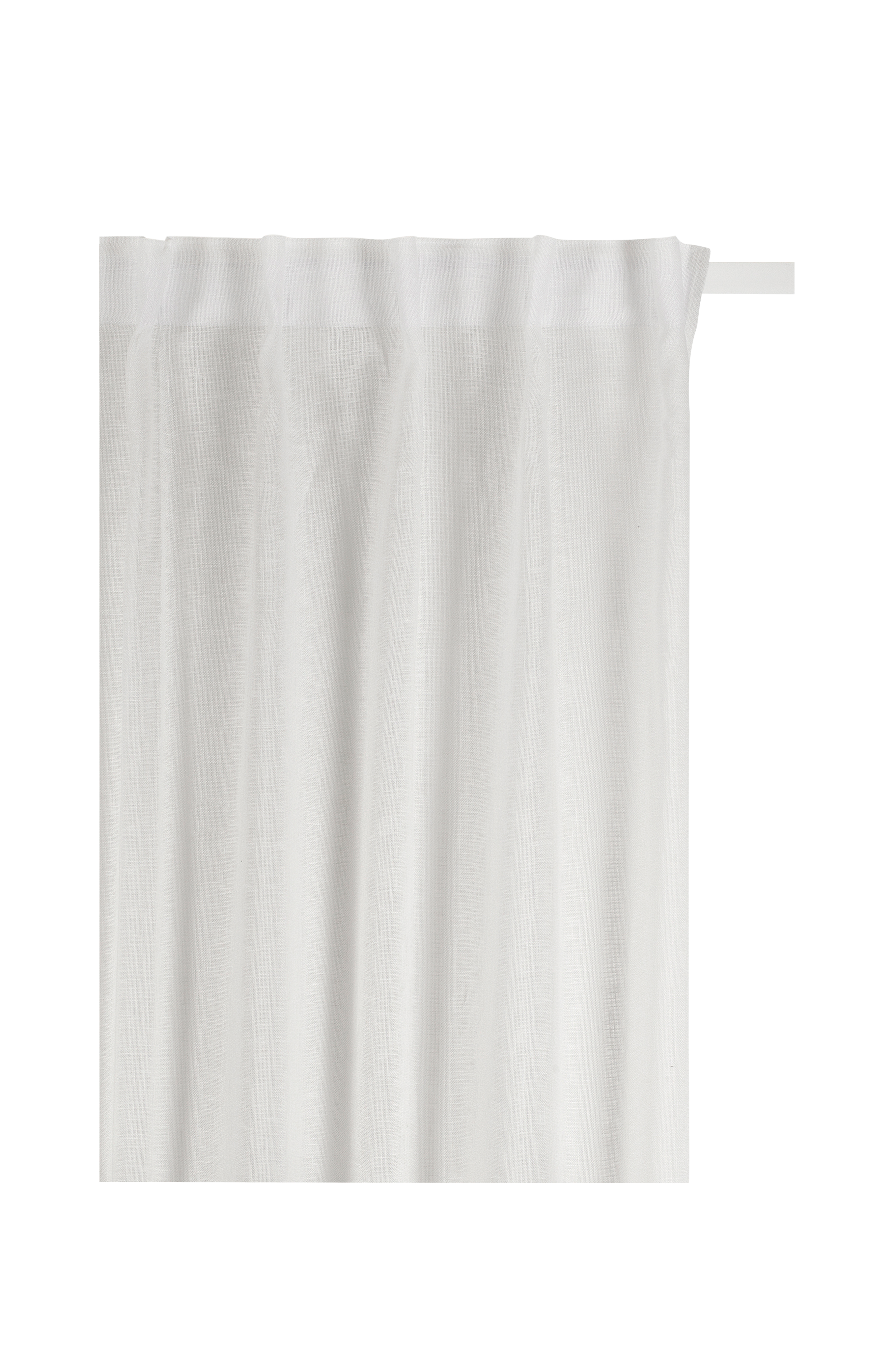 Sunnanvind Gardinet er syet i en kraftig transparent hør. Sunnanvind lukker meget lys ind og har et klassisk look. Gardinet har både et overfaldsbånd og en kanal, to muligheder for opsætning. Hør i farven Oatmeal kommer fra ufarvede garner og kan derfor variere i udseende afhængigt af år og høst. Sunnanvind fås i farverne White og Oatmeal. Skånsom vask ved 40 °C. Må ikke tørretumbles. Hæng til tørre. Må ikke stryges eller mangles. Krympning 2-4%.